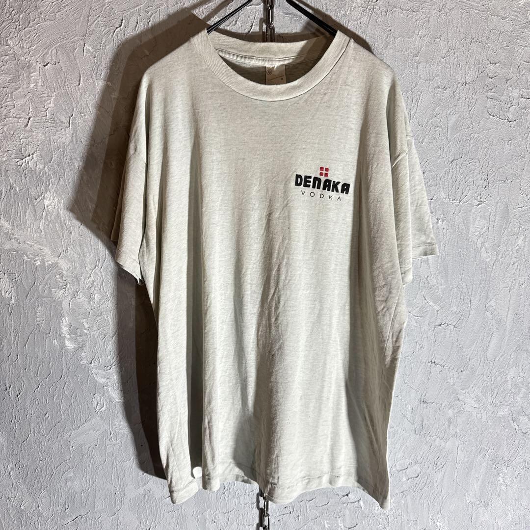 デンマークのウォッカであるDENAKAのプリントが入った酒Tシャツ、ボディは80s頃のRussell Sports wearです。
