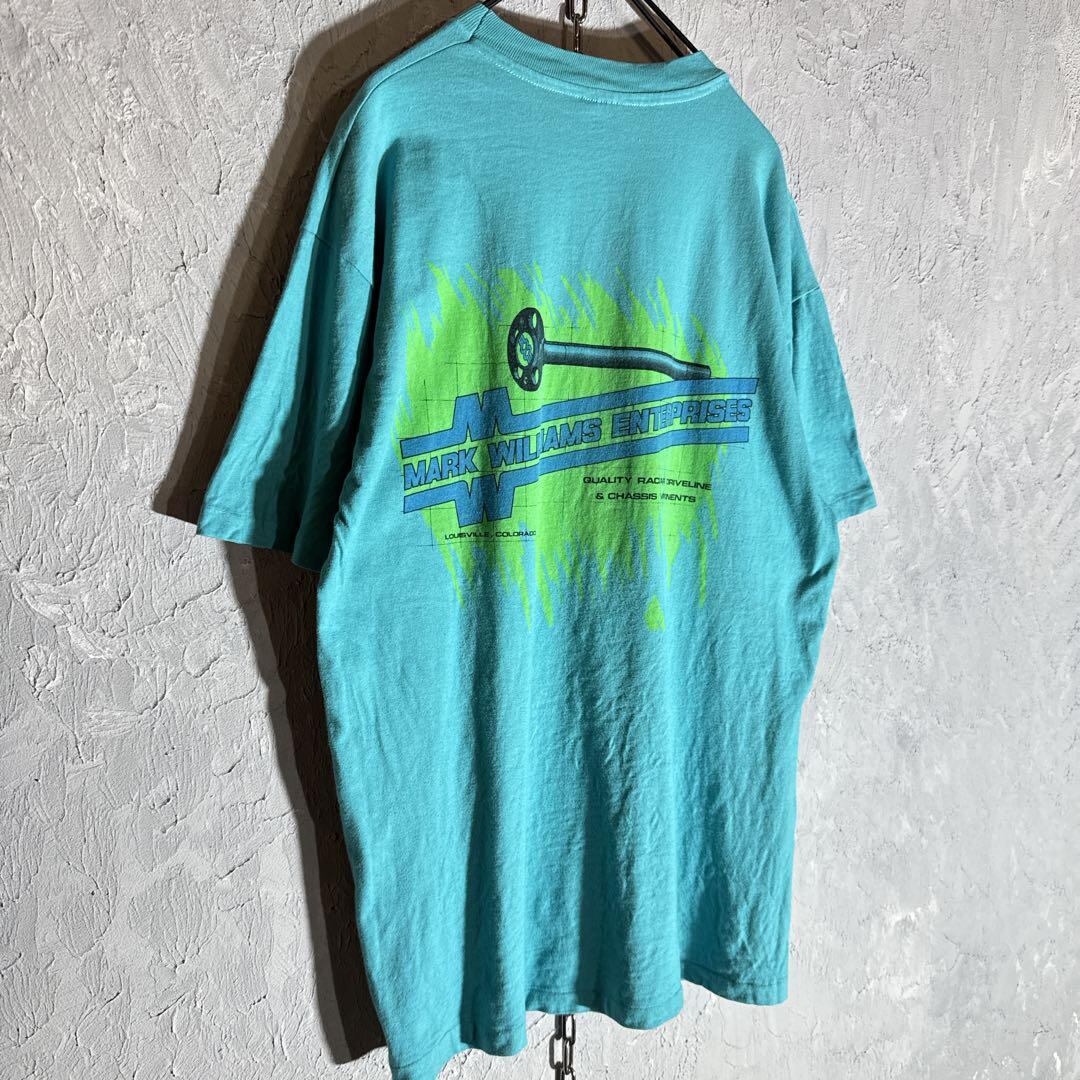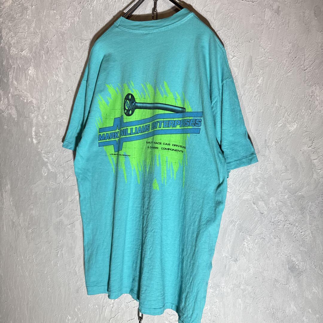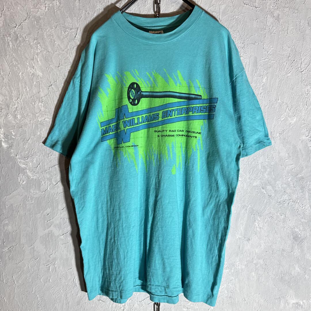 ヘインズ Hanes 90sUSA vintage Tシャツ 企業プリント ヴィンテージ シングルステッチ ライトブルー ユニセックス 古着