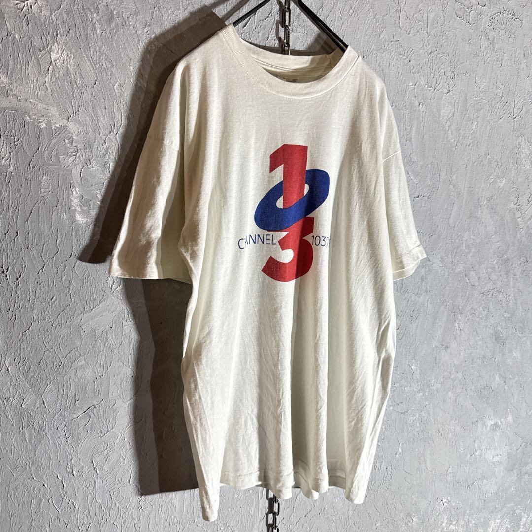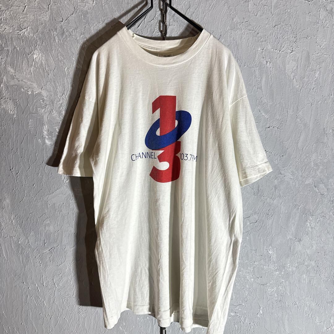 SCREEN STARS 90s vintage ラジオ局 企業ロゴ Tシャツ スクリーンスターズ シングルステッチ ヴィンテージ ホワイト L アメカジ 古着
