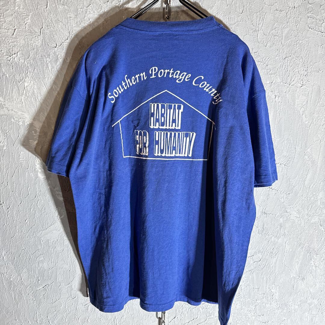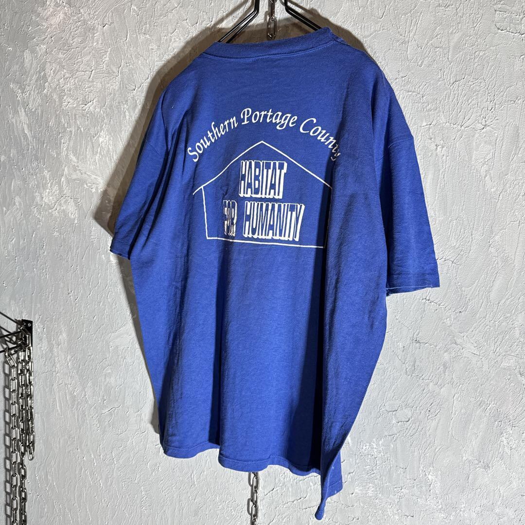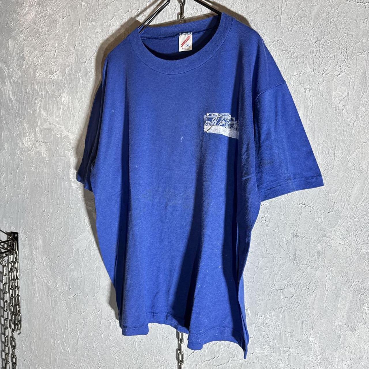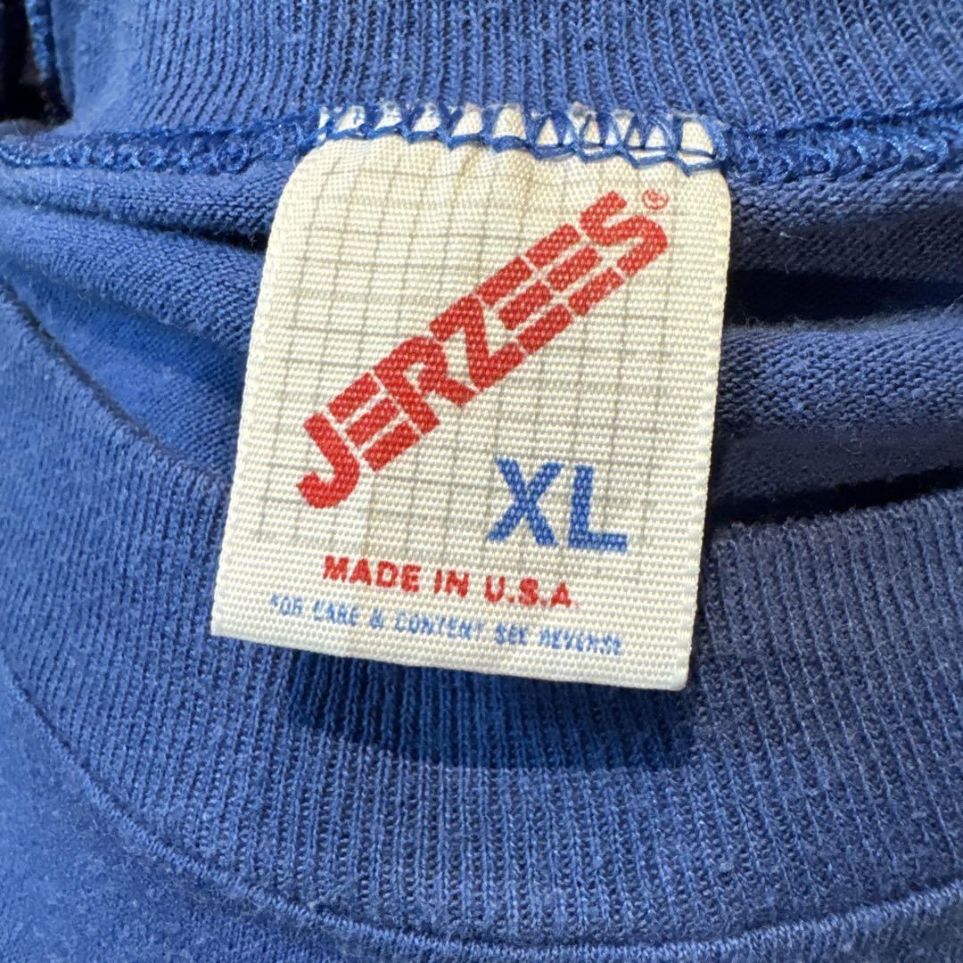 ジャージーズ jerseys 80s〜 USA デザインプリント Tシャツ NGO団体 バックプリント ブルー XL ユニセックス シングルステッチ ヴィンテージ 古着