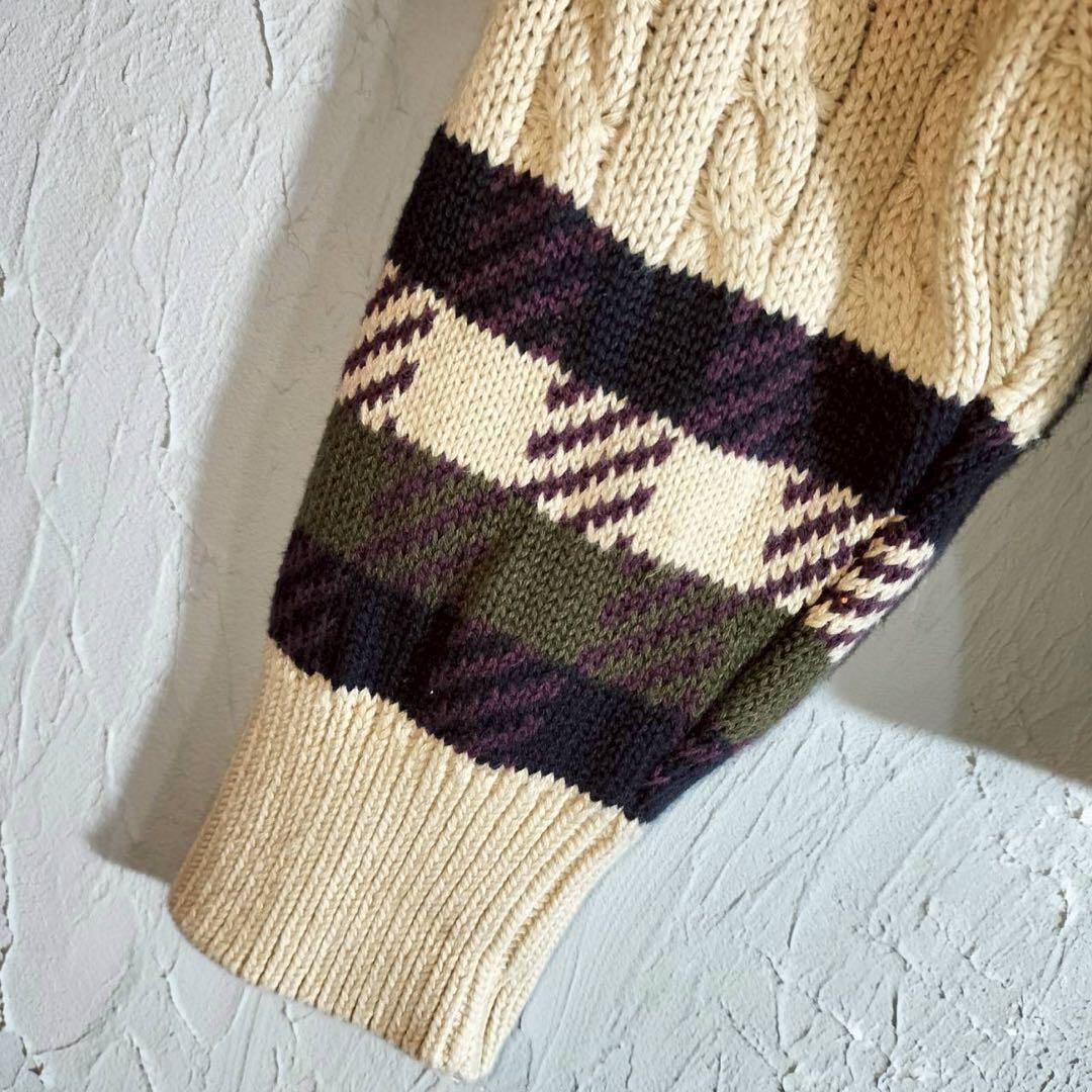woods&gray コットン ニット セーター 総柄切替 XL レトロ ユニセックス 古着