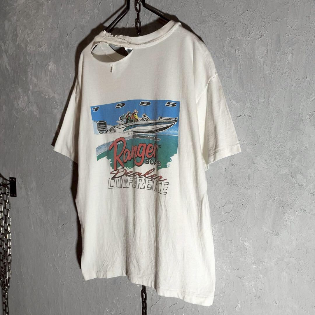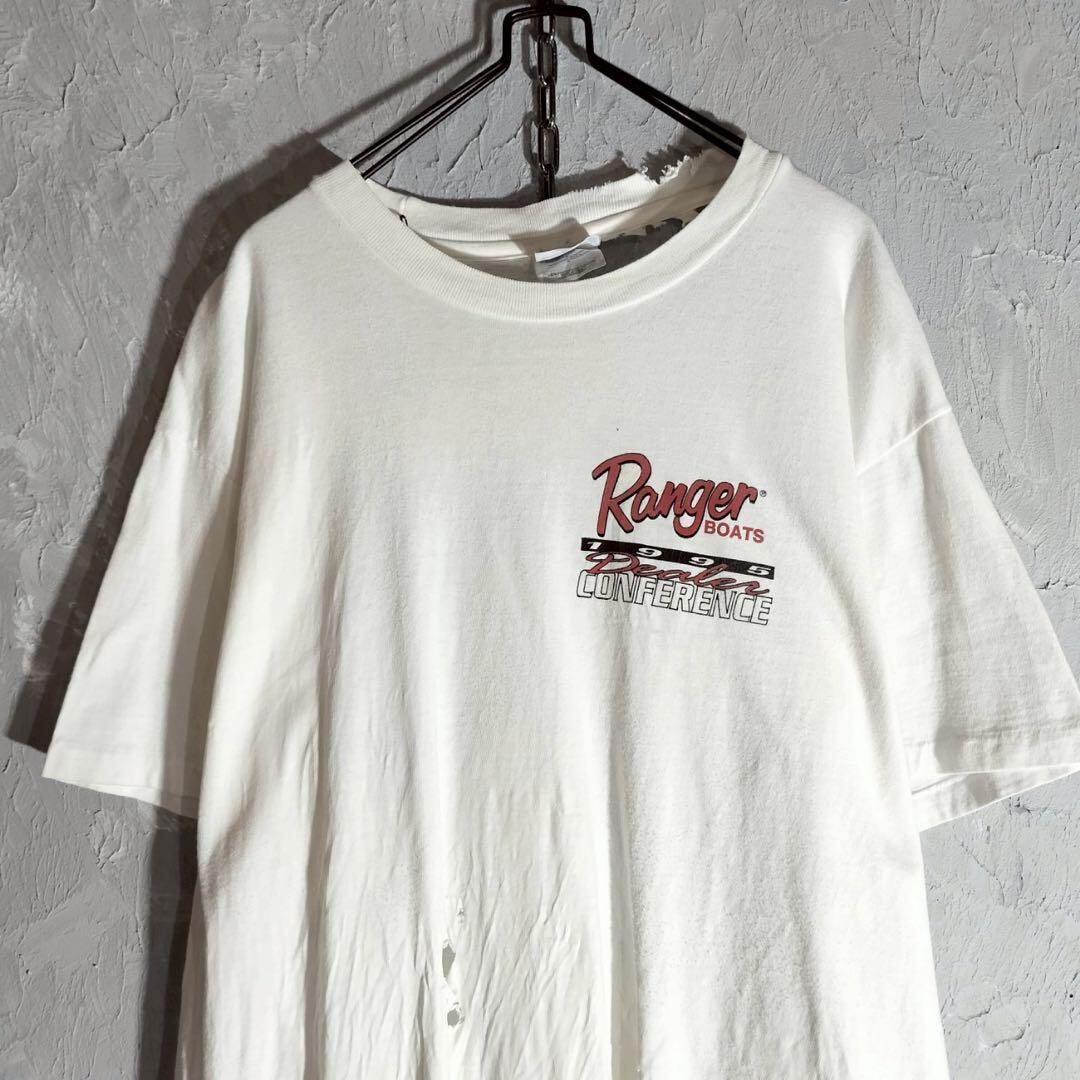 ヘインズ Hanes 90s vintage Bolo Tシャツ バックプリント シングルステッチ ヴィンテージ グランジ ホワイト L 古着