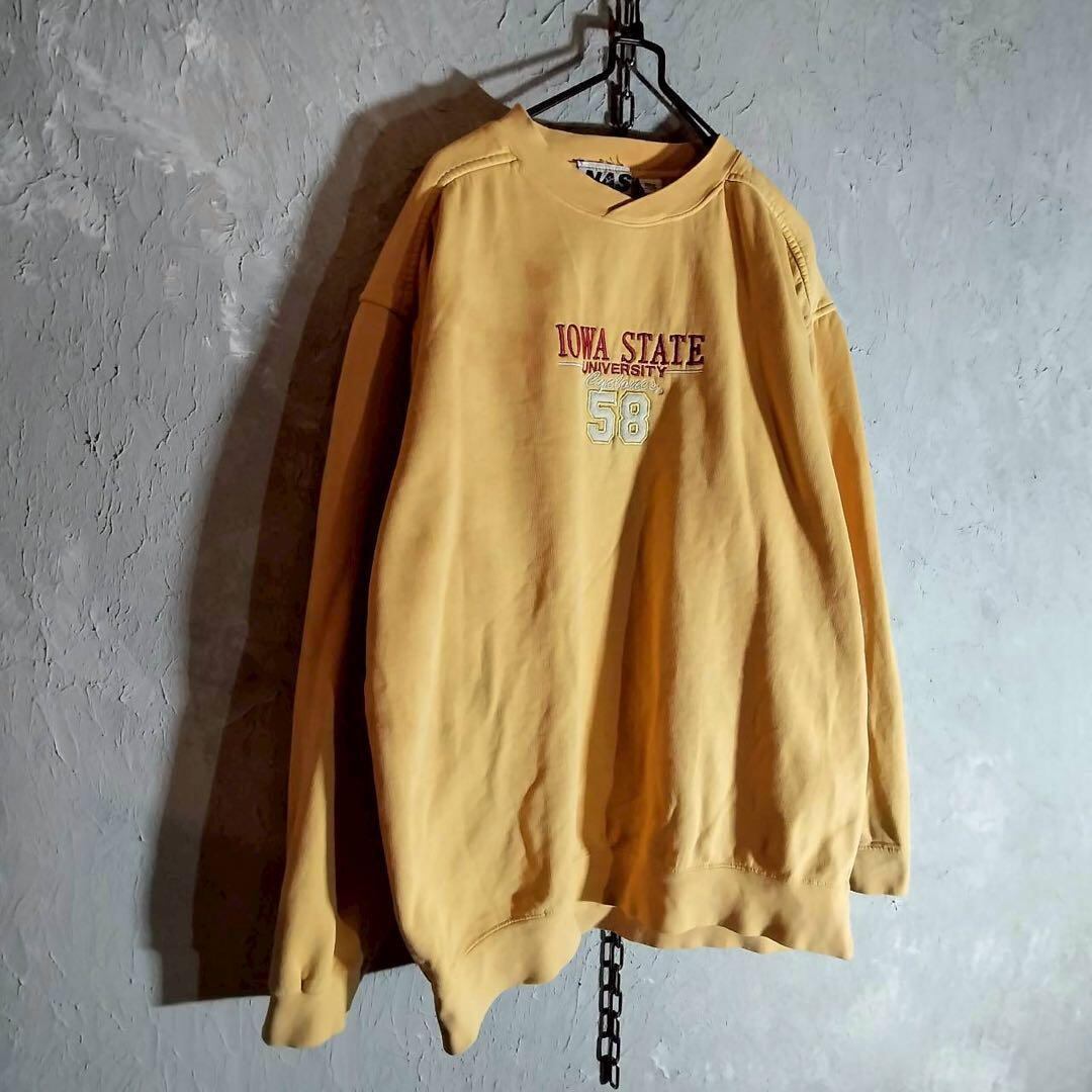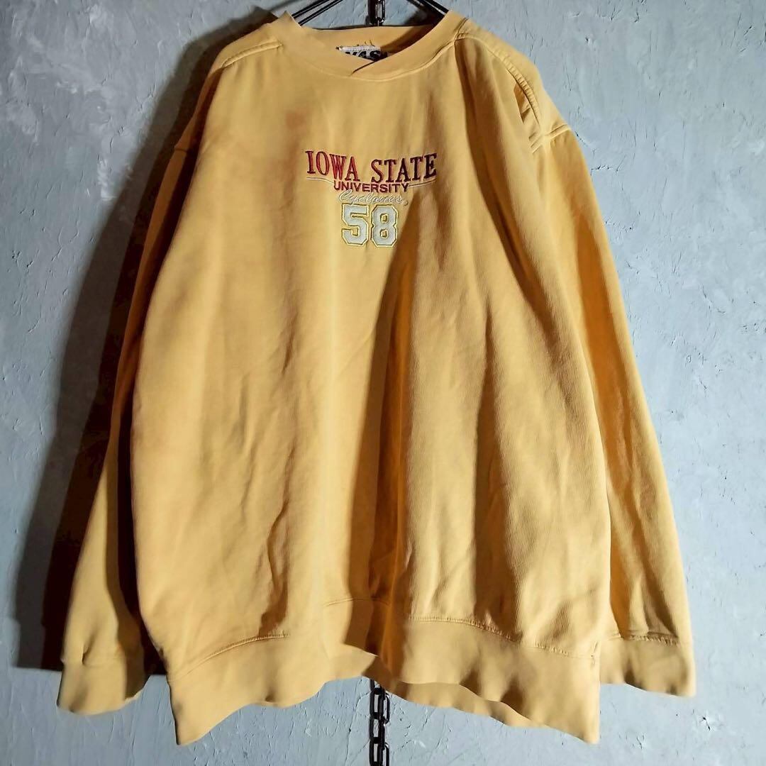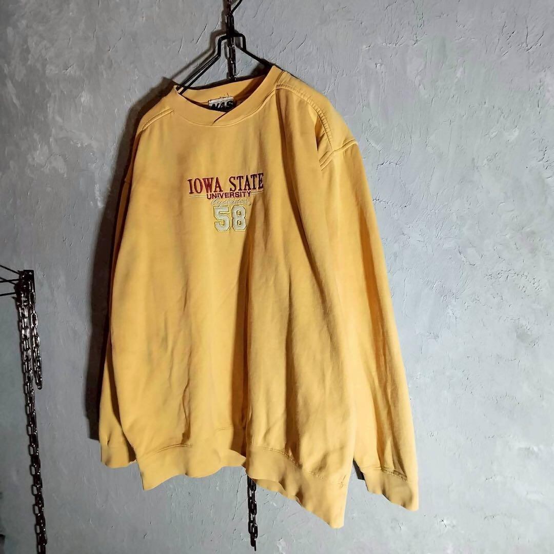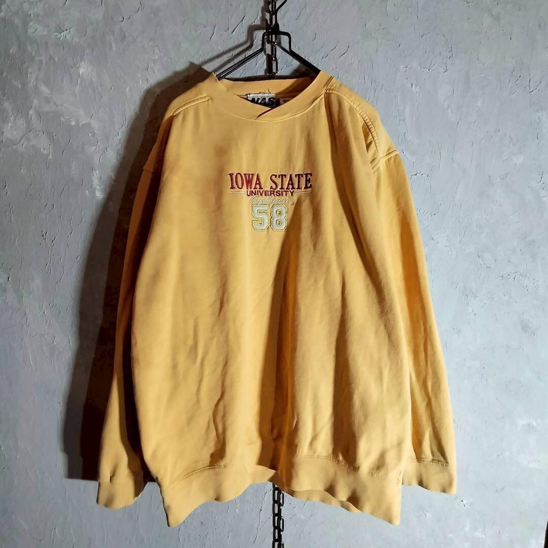 NAS アイオワ大学 カレッジ刺繍 スウェット トレーナー M 黄色 ヴィンテージ レトロ ユニセックス 古着