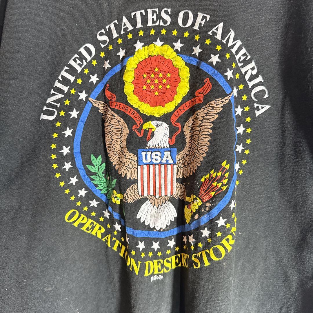 フルーツオブザルーム 90s USA 湾岸戦争 ミリタリー Tシャツ ヴィンテージ シングルステッチ ブラック 古着 L