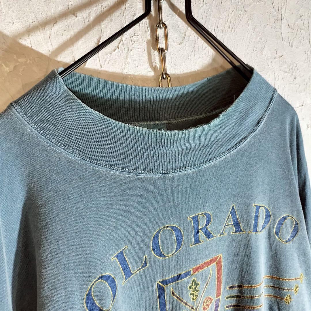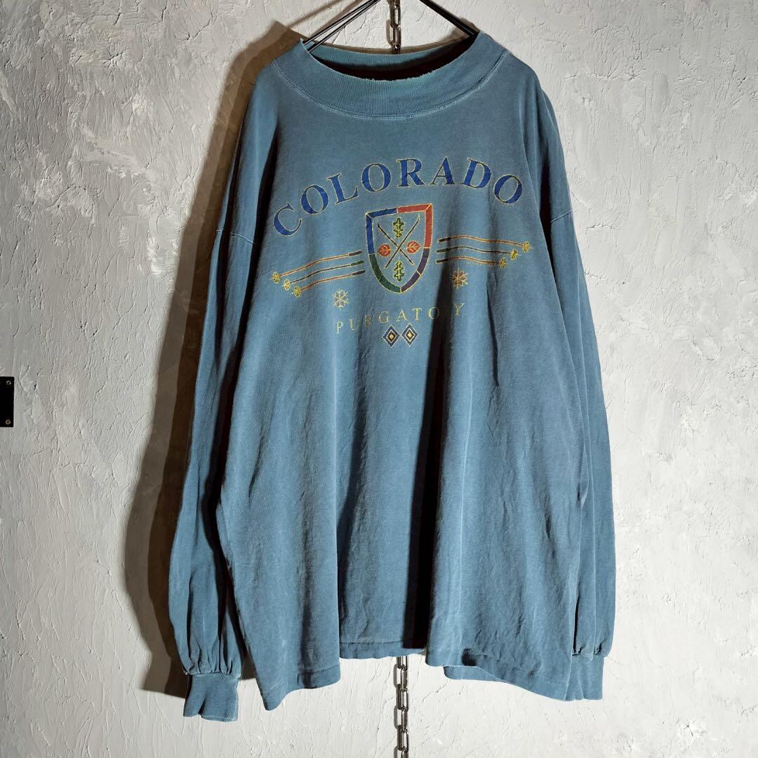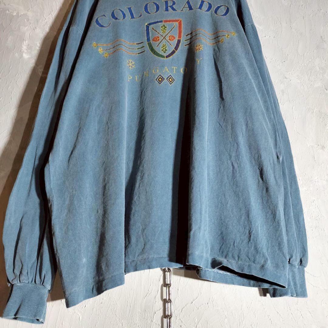 P.S.T made in USA 90s 長袖 Tシャツ ロンT ロングスリーブ ヴィンテージ シングルステッチ くすみブルー ユニセックス XL レトロ 古着