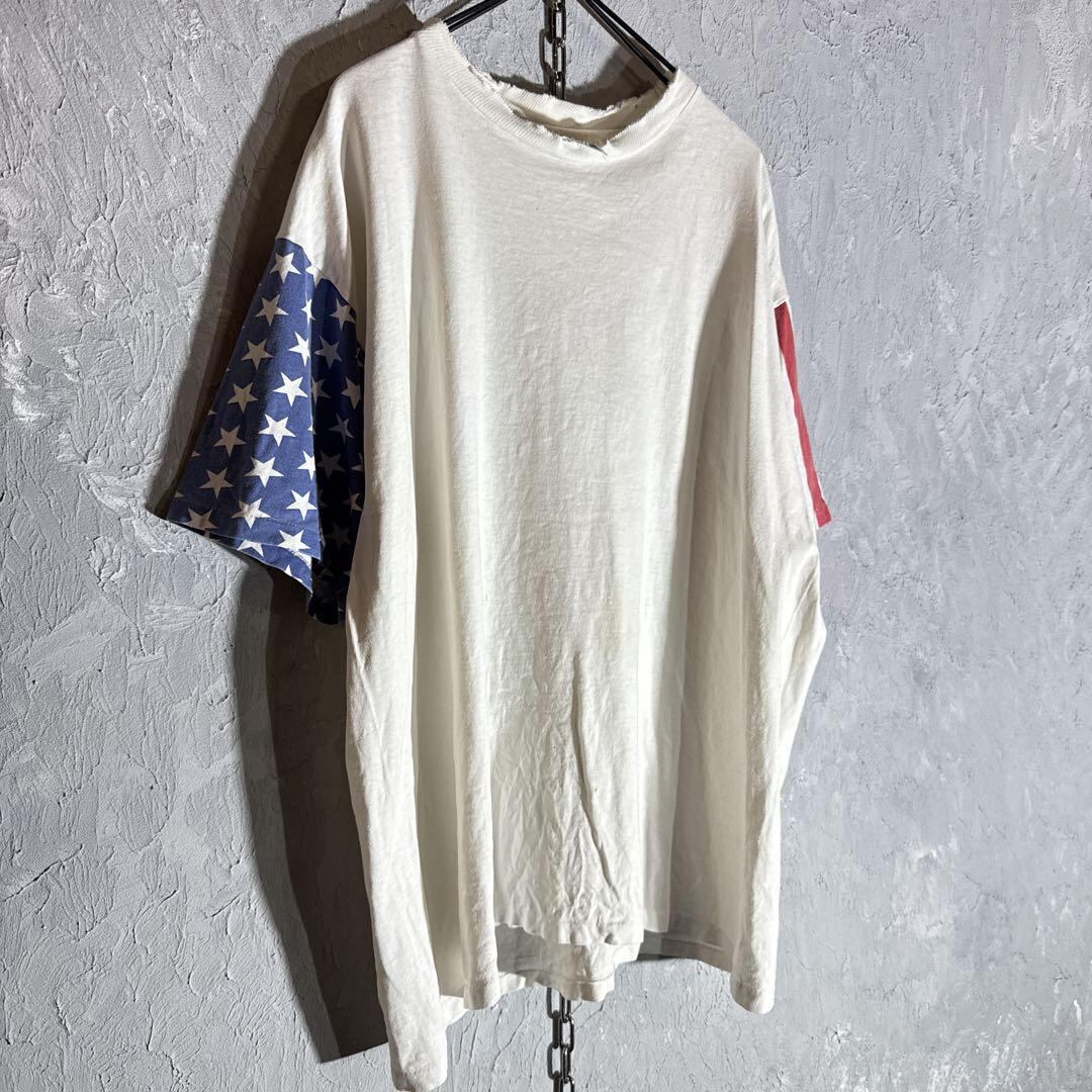 L.A.T Sports wear 90s USA ヴィンテージ 星条旗 アメリカ国旗 Tシャツ シングルステッチ ホワイト XL アメカジ 古着