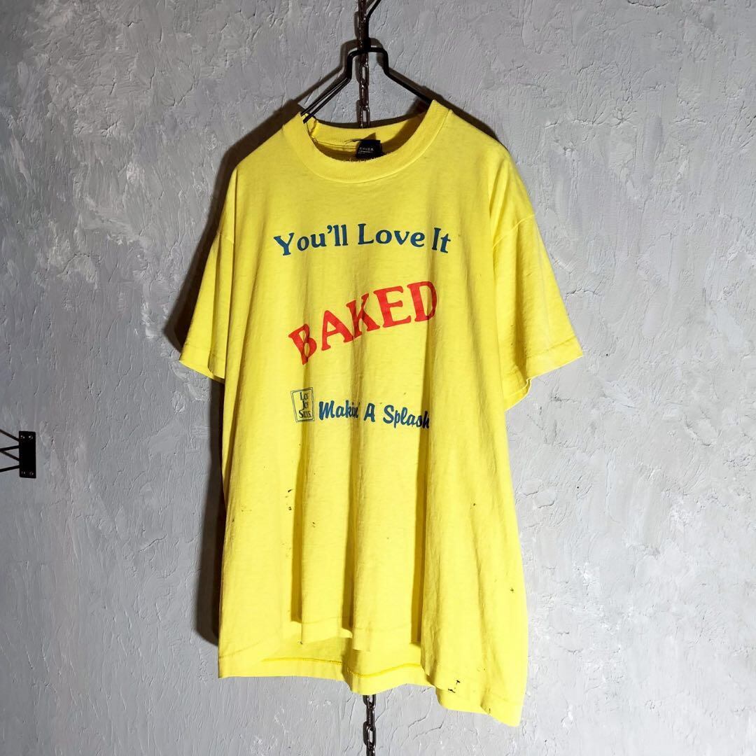 80s SCREENSTARS ロングジョンシルバーズ KFC 企業ロゴ Tシャツ シングルステッチ ヴィンテージ USA製 イエロー XL 古着