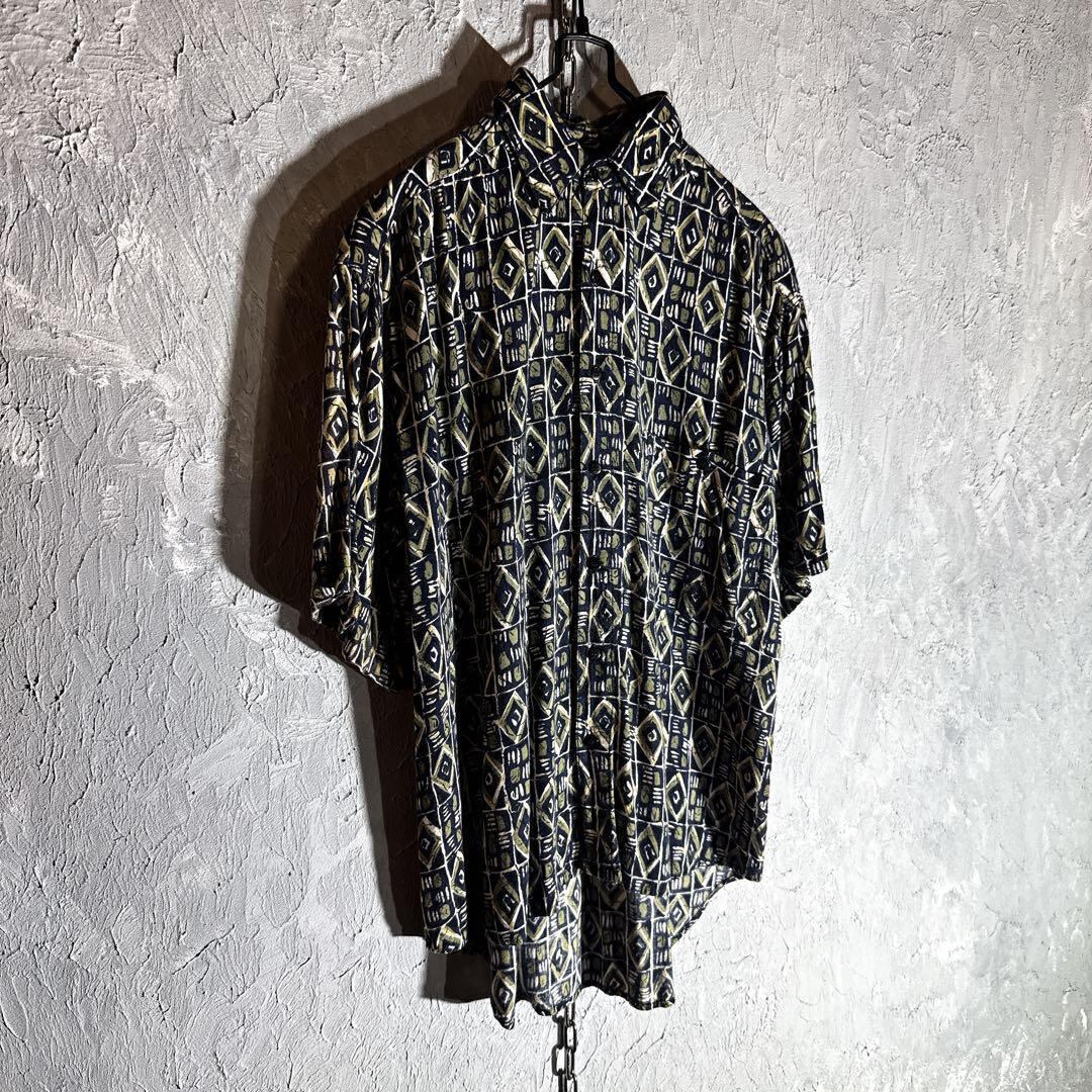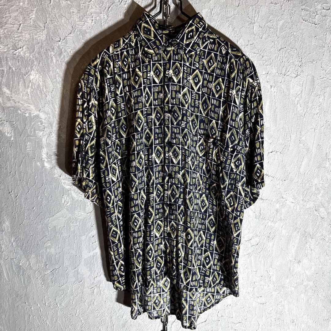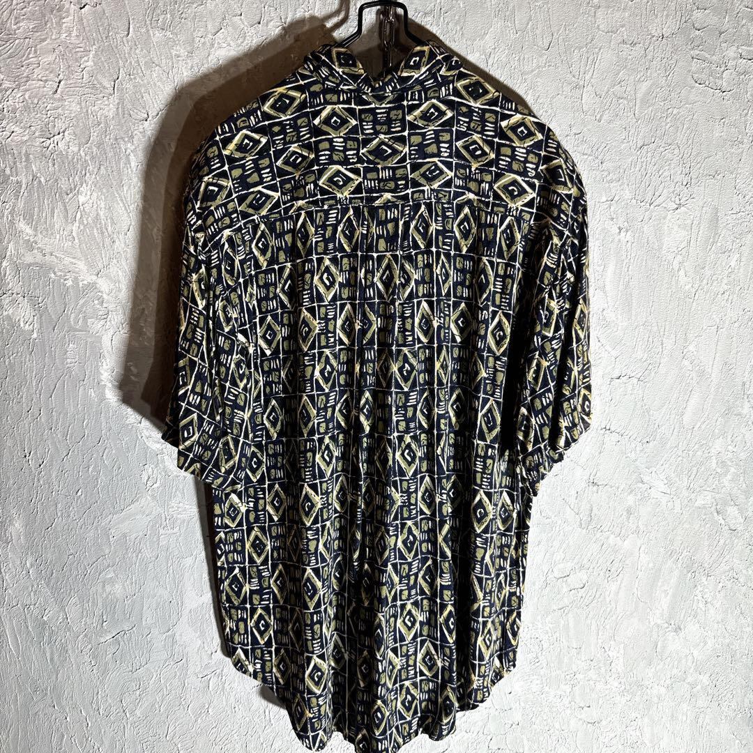 エスニック柄 レーヨンシャツ 総柄シャツ 半袖 ユニセックス S 古着
