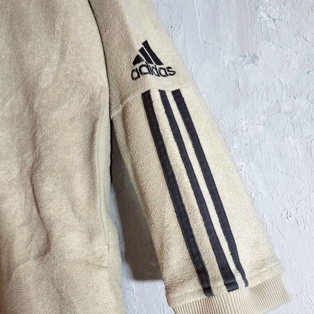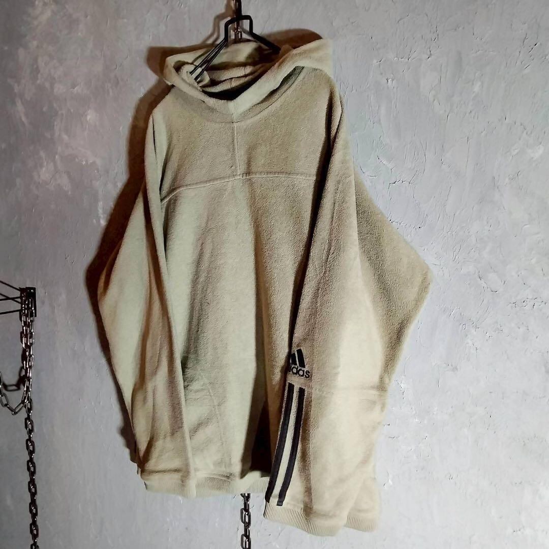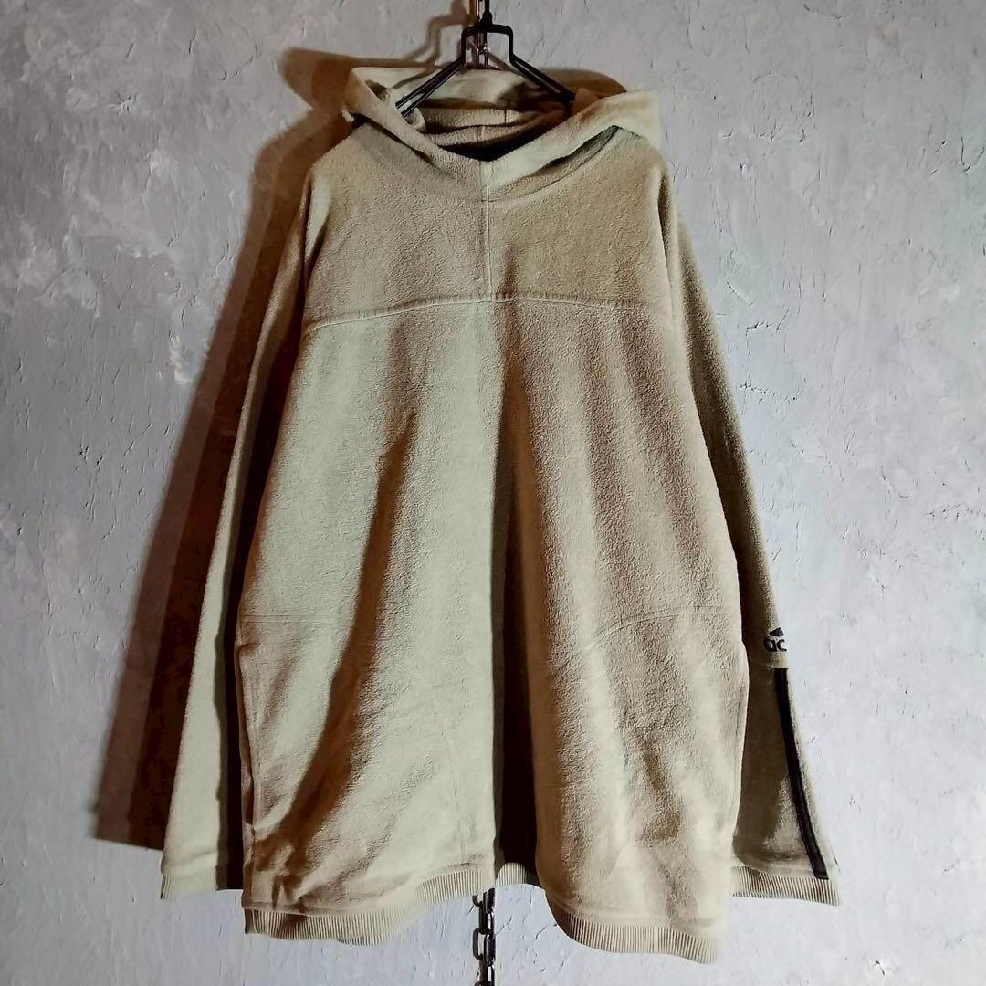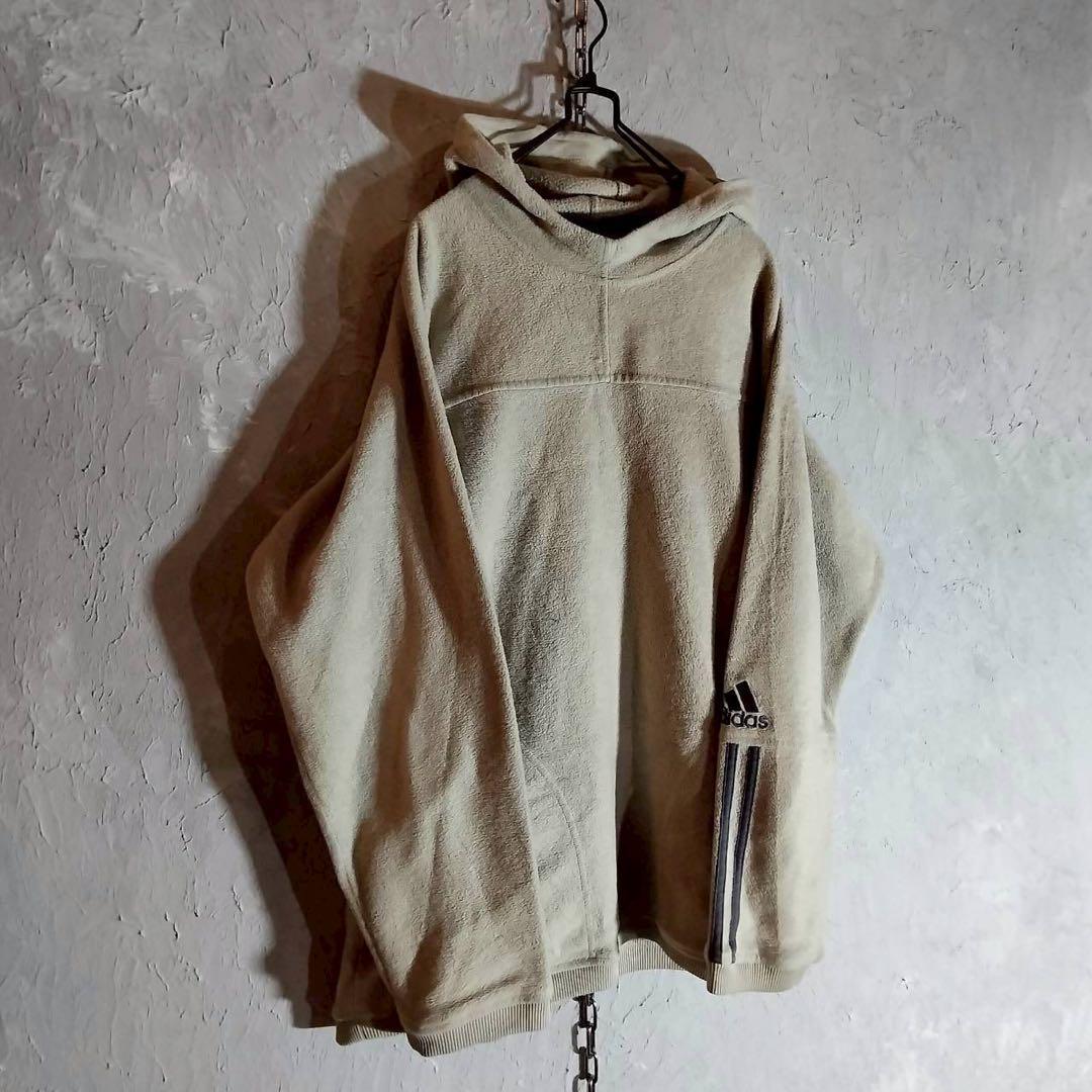 adidas アディダス 00s パーカー フリース プルオーバー フーディー 刺繍ロゴ ベージュ M 古着