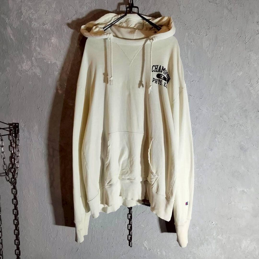 チャンピオン champion パーカー フーディ プルオーバー スウェット ビッグシルエット アイボリー L ユニセックス 古着