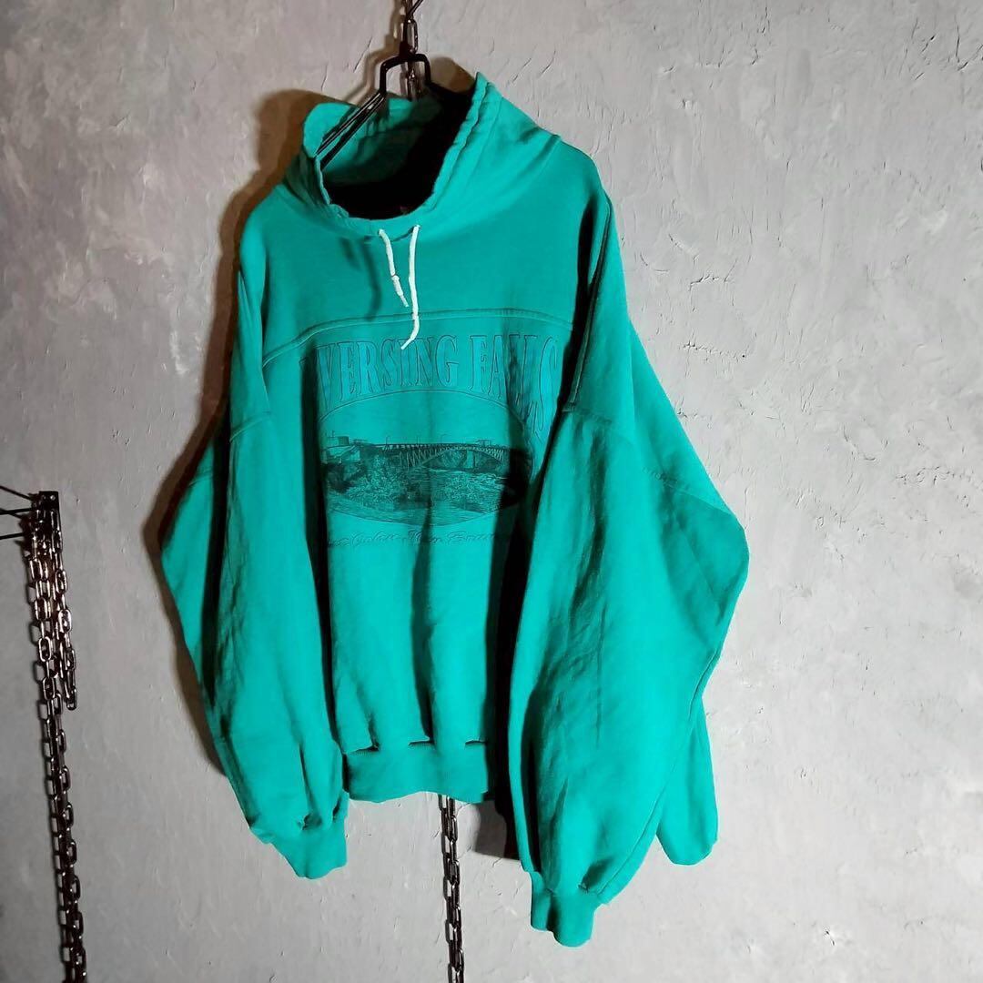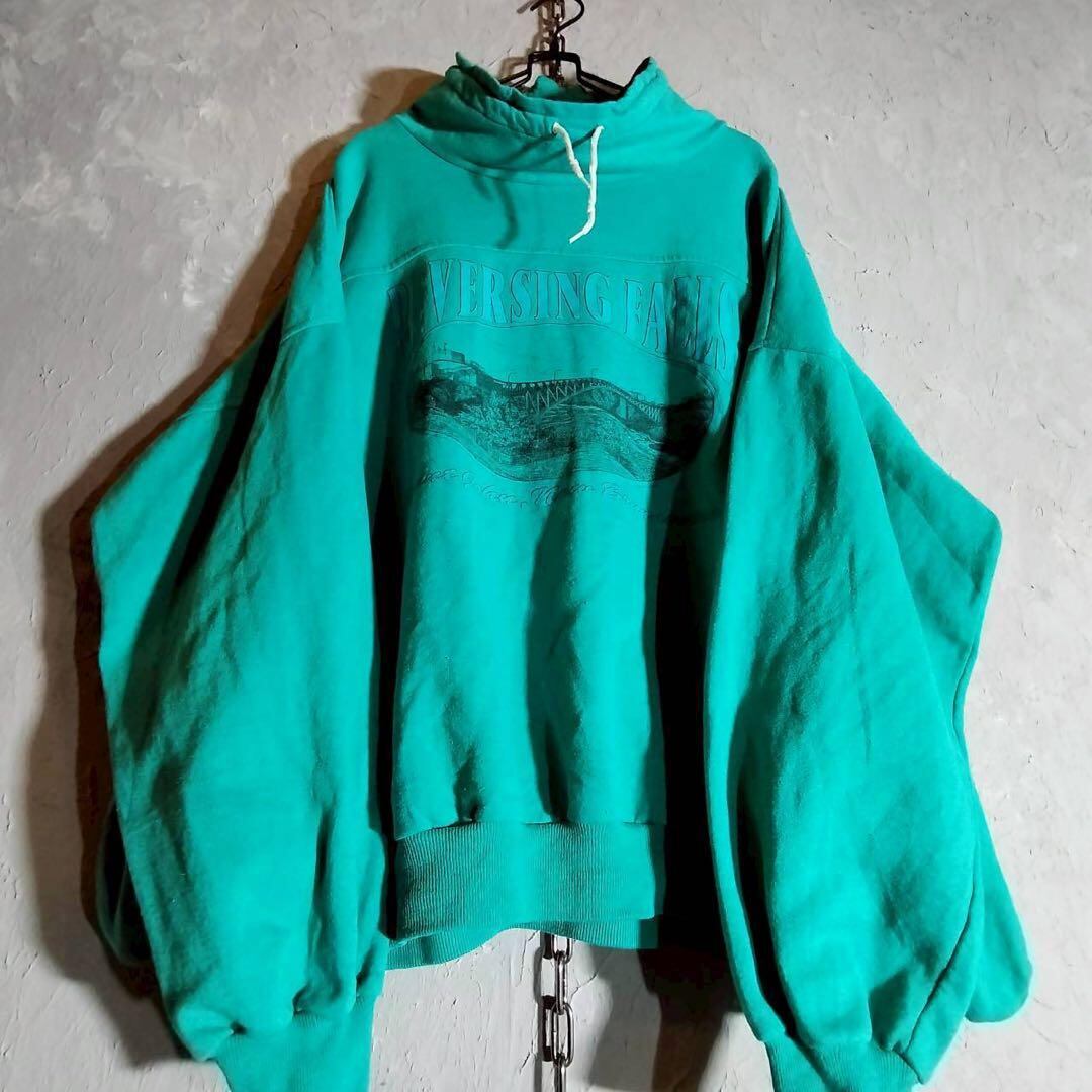 Fabec 90s カナダ製 モックネック スウェット トレーナー レトロ ヴィンテージ グリーン ユニセックス 古着