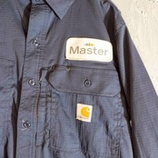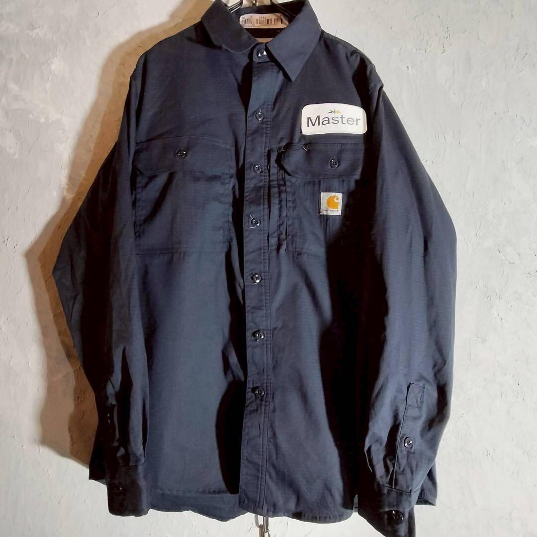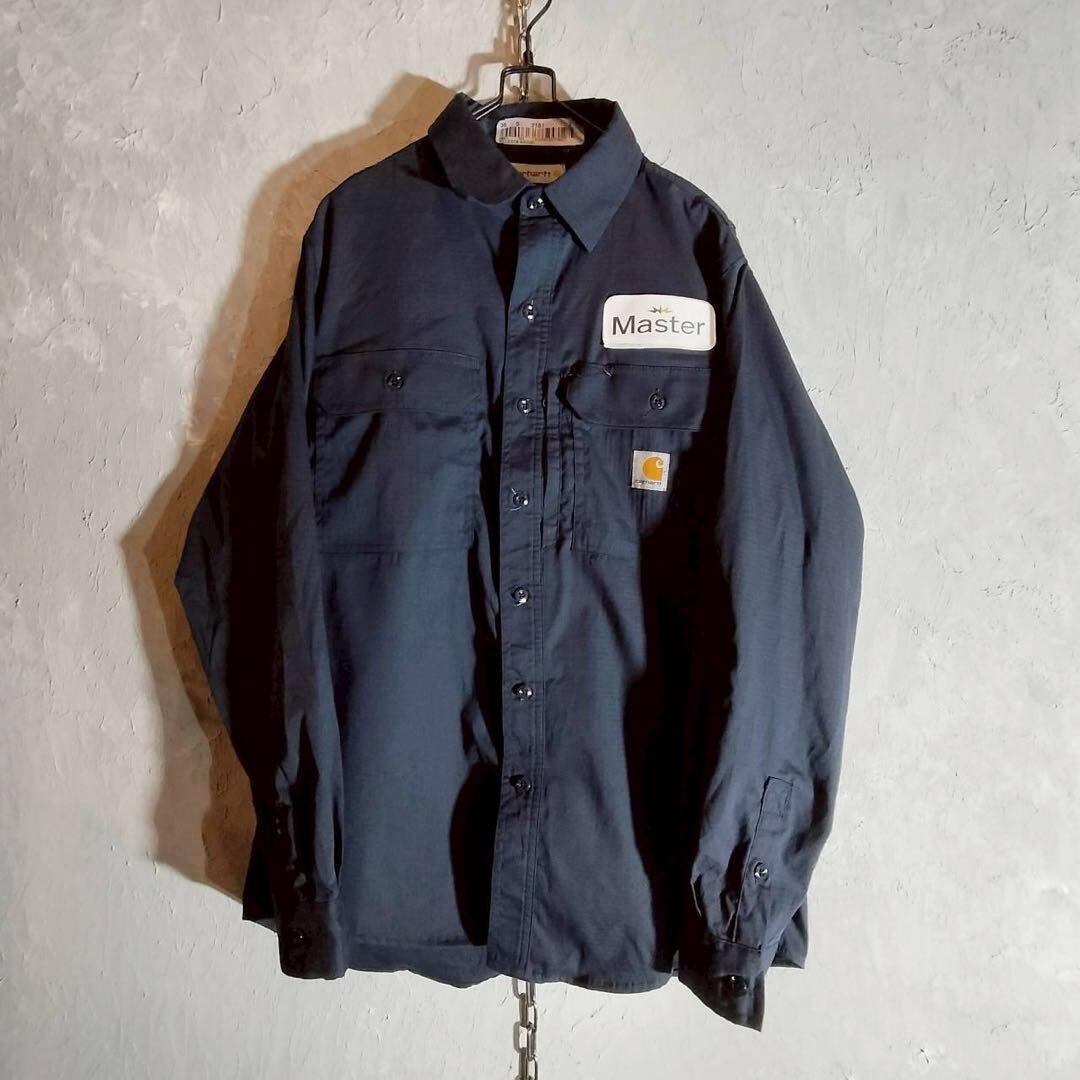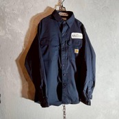 カーハート CARHARTT 企業ロゴ刺繍 ワッペン ワークシャツ 長袖 ネイビー 古着