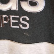 存在感のあるバックトレフォイル刺繍、フロントのブランド刺繍、上びらきのポケット、モックネック。現行では絶対出さないであろう古き良きデザインです。