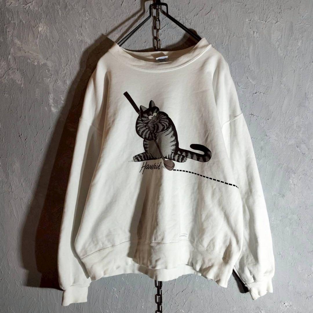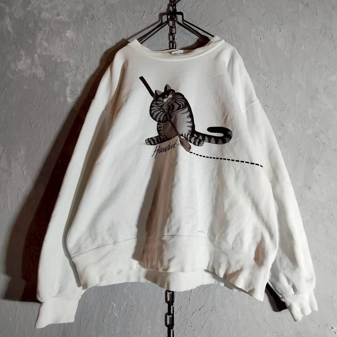 クリバンキャット crazy shirt スウェット トレーナー 80s USA クレイジーシャツ M ホワイト 古着