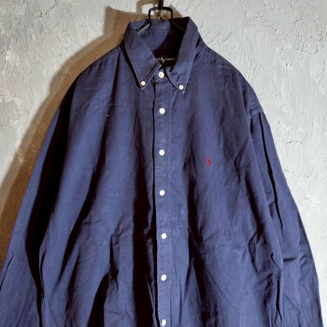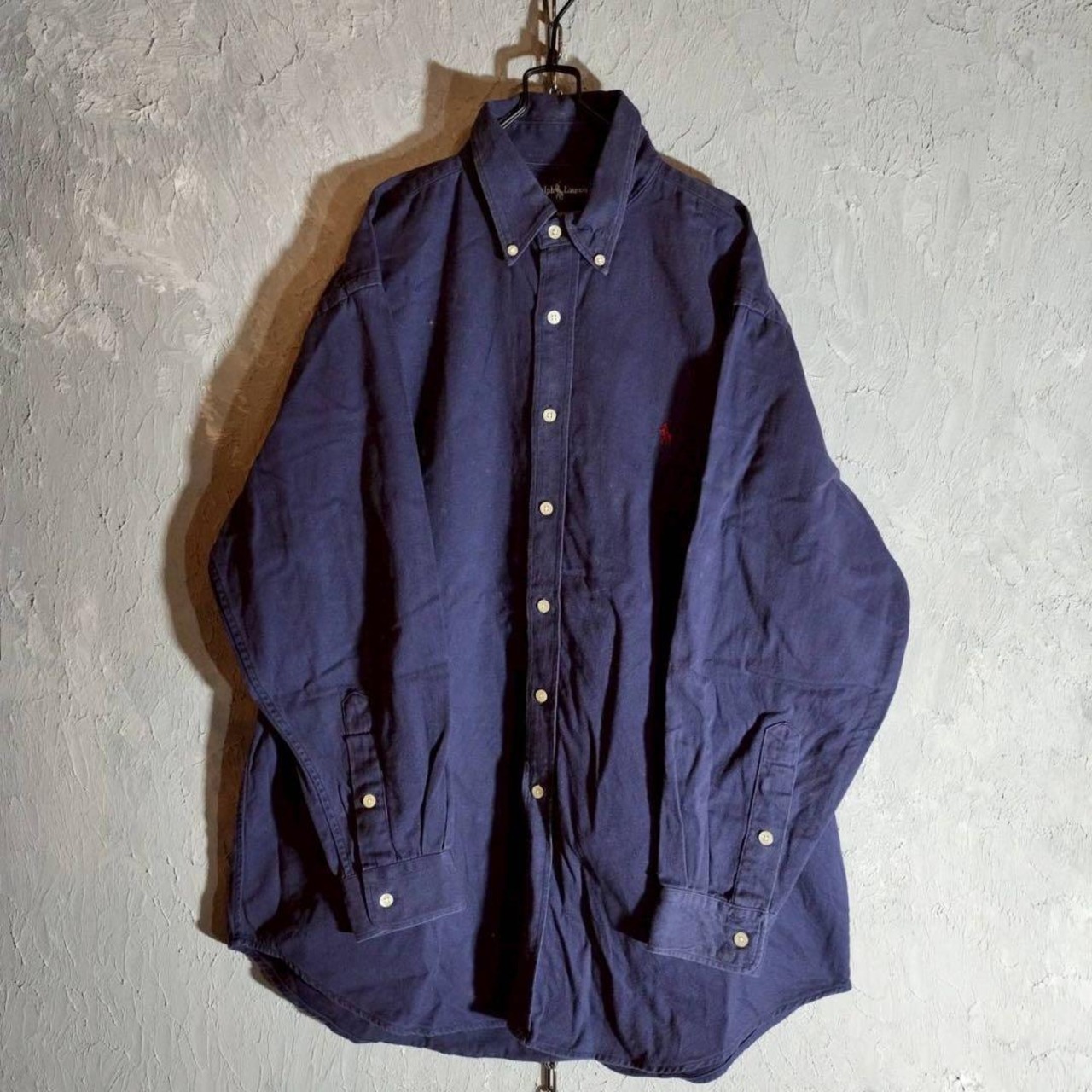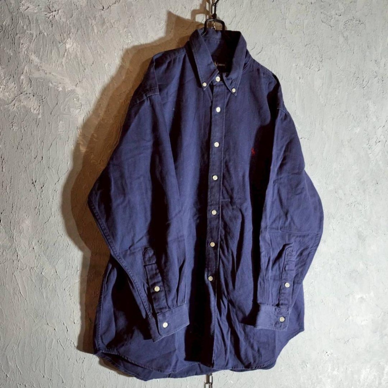 Ralph Lauren ラルフローレン 刺繍ロゴ 長袖 シャツ BLAIRE ネイビー L ユニセックス 古着