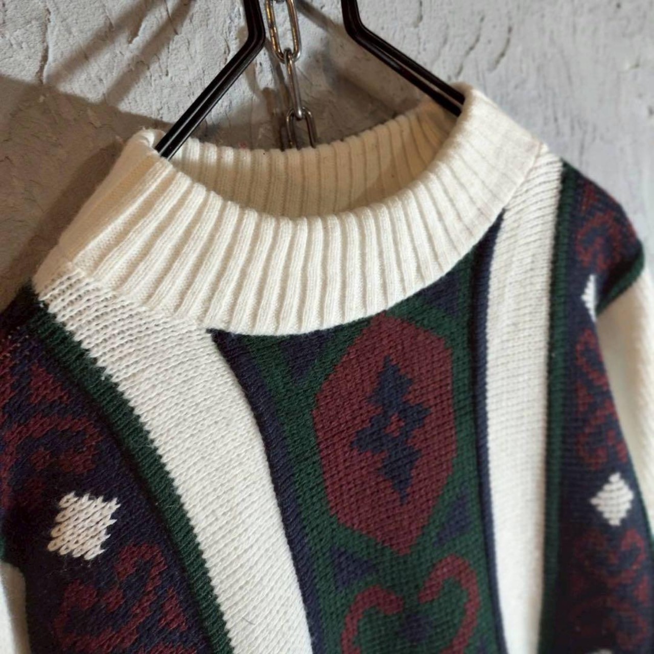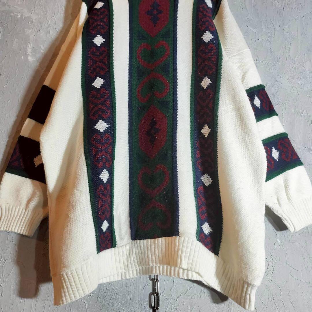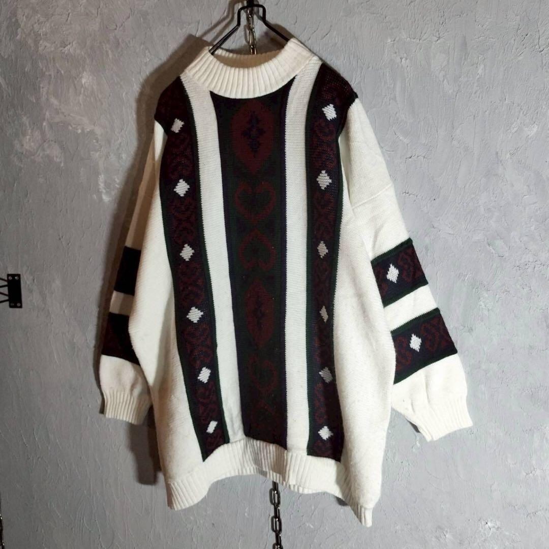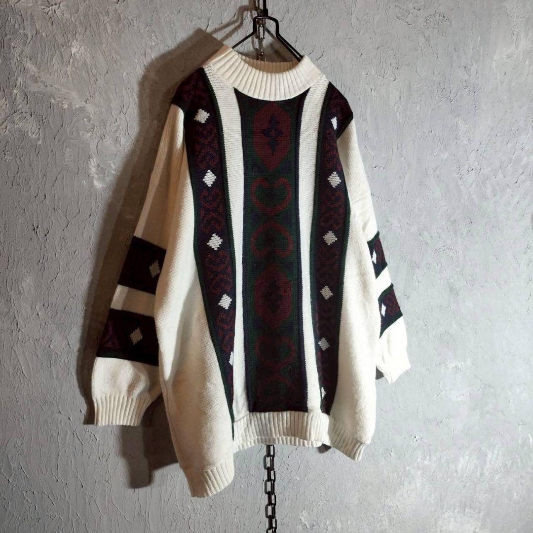 80s〜 USA製 vintage 柄切替 ニット セーター M相当 ヴィンテージ ユニセックス 古着