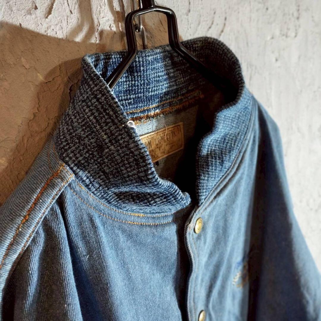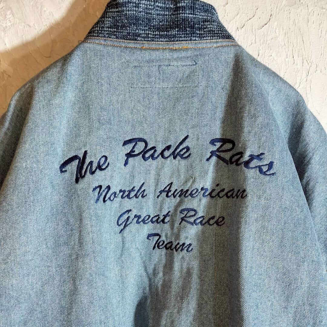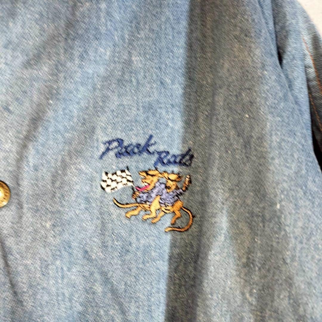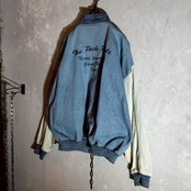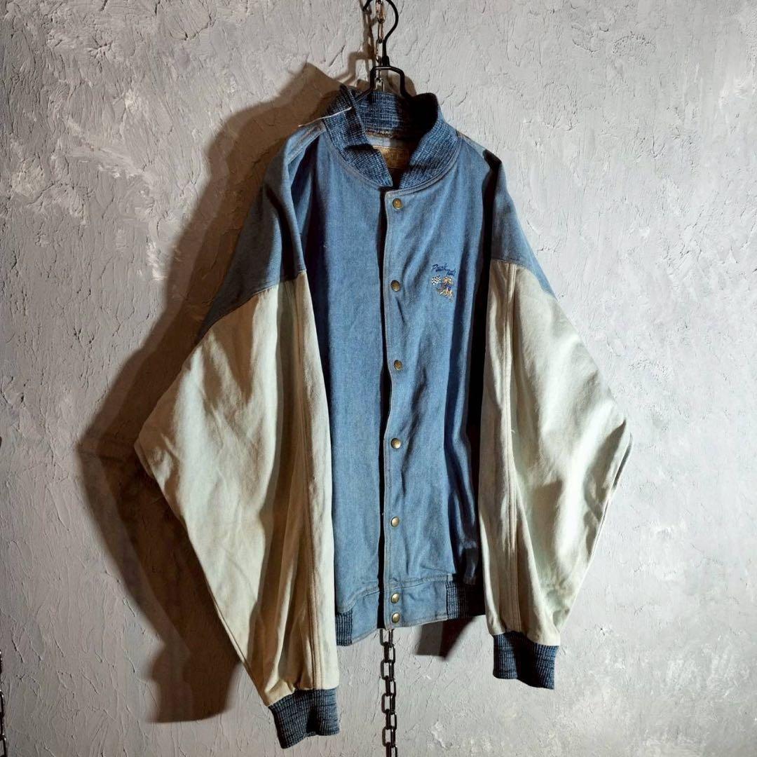 バック刺繍 デニムジャケット ベースボールジャケット ブルゾン XL アメカジ ユニセックス 古着