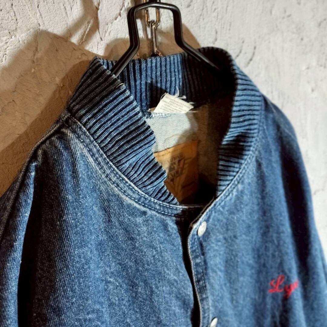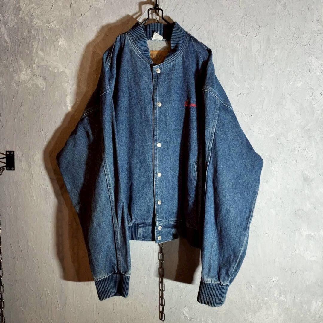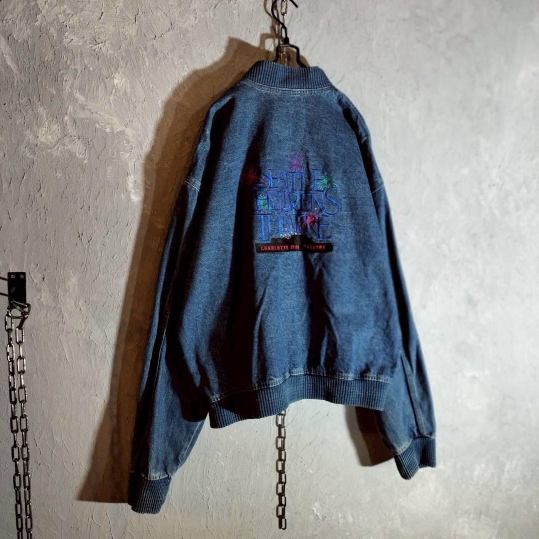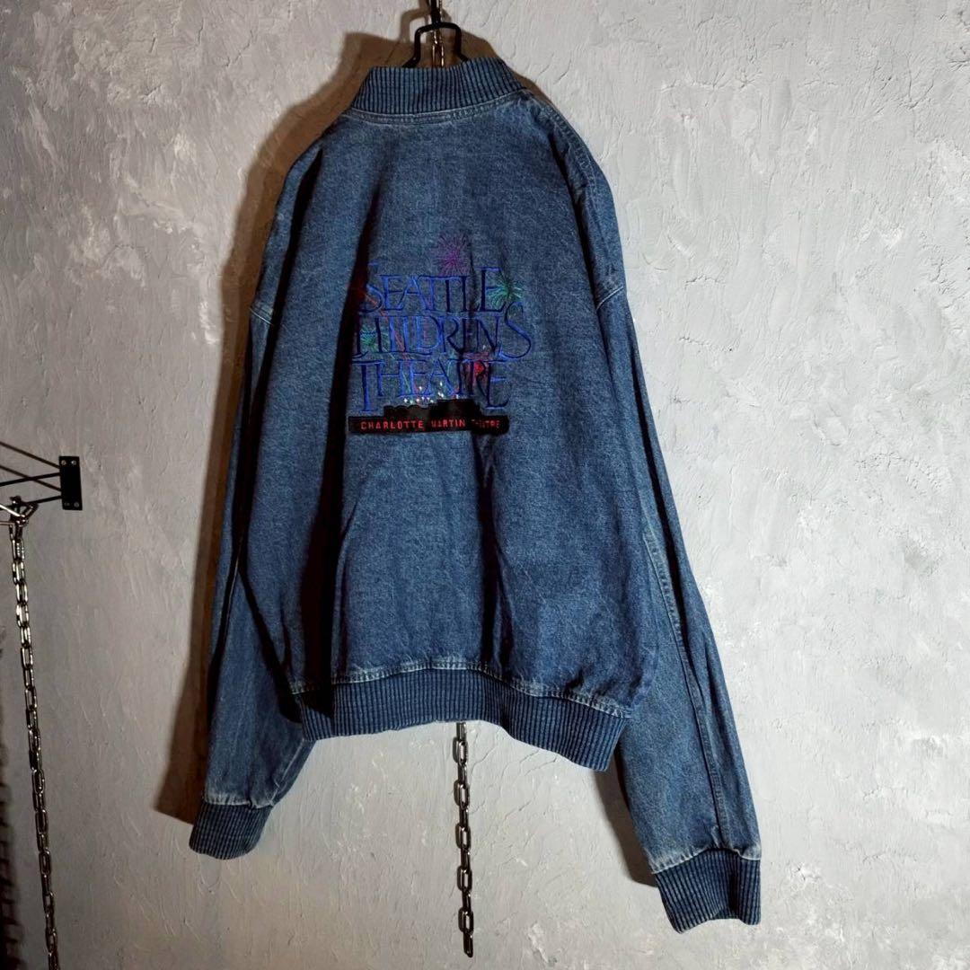 バック刺繍 デニムジャケット ベースボールジャケット ブルゾン USAシアター アメカジ 古着