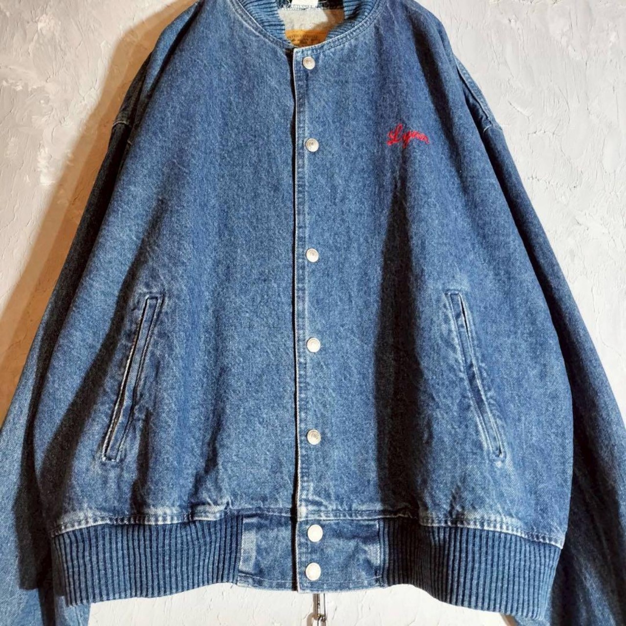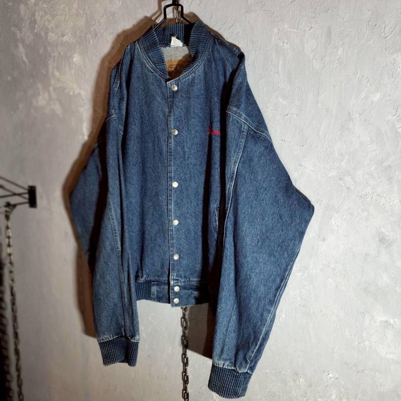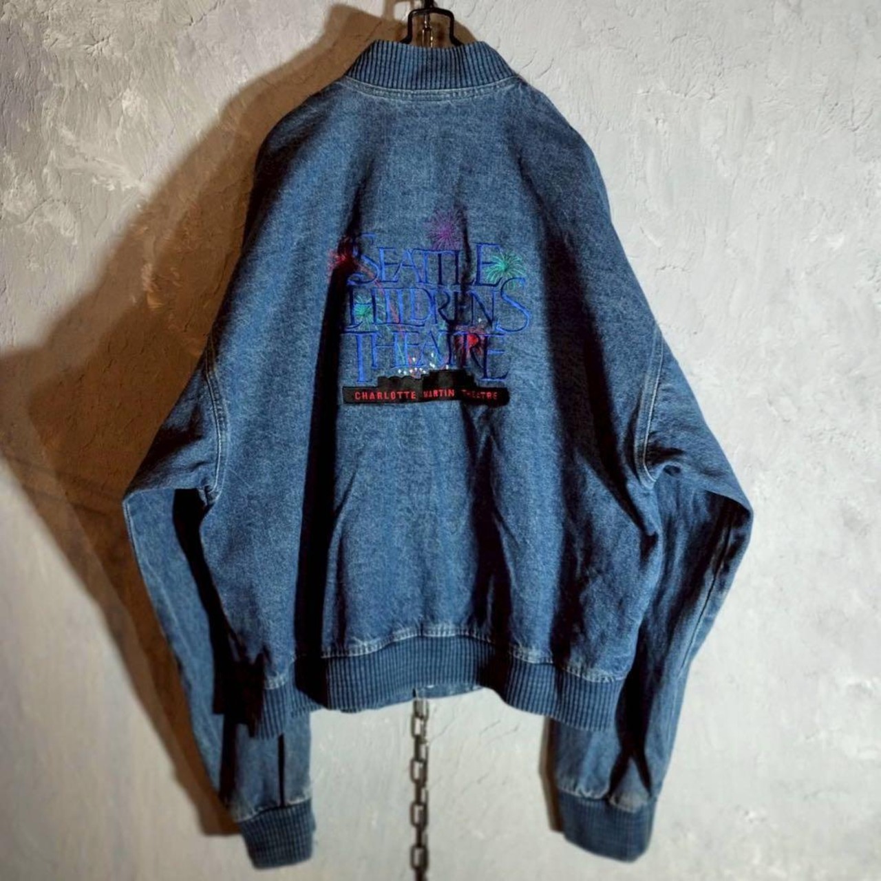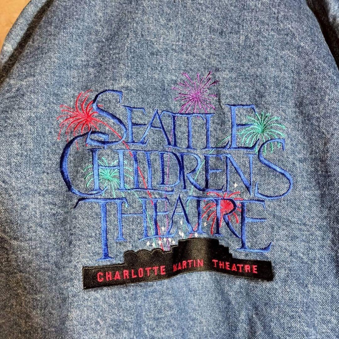 バック刺繍 デニムジャケット ベースボールジャケット ブルゾン USAシアター アメカジ 古着