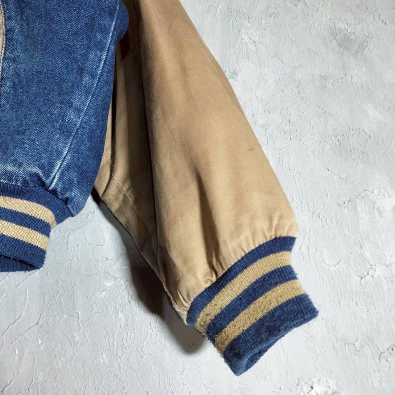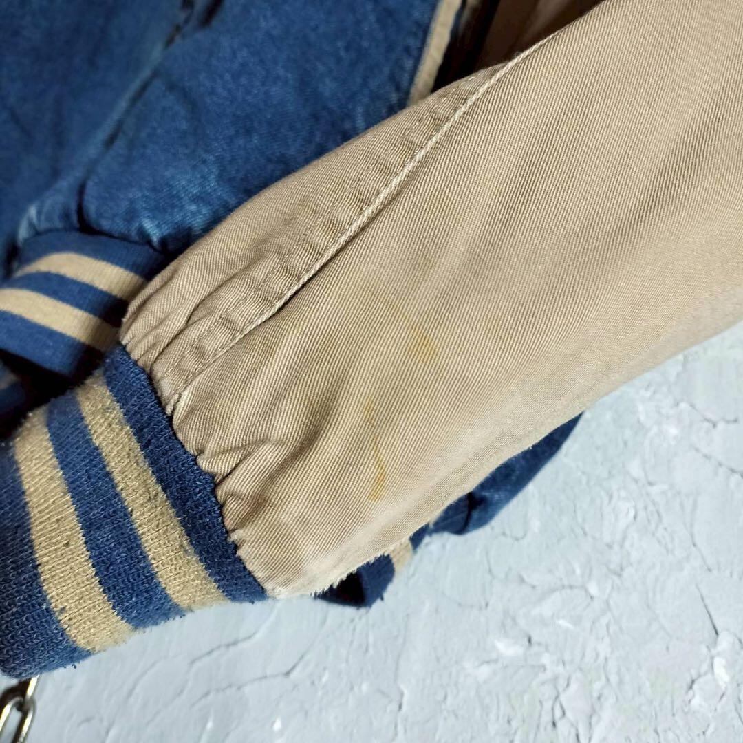 Tri.mountain 刺繍企業ロゴ デニムジャケット スタジャン アワードジャケット ブルゾン ベースボールジャケット L 古着
