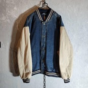 basicEdition 袖切替 デニムジャケット スタジャン ベースボールジャケット ブルゾン USA Mサイズ 古着
