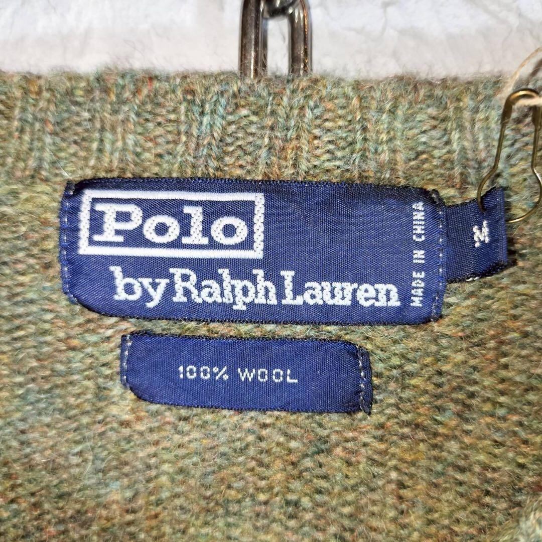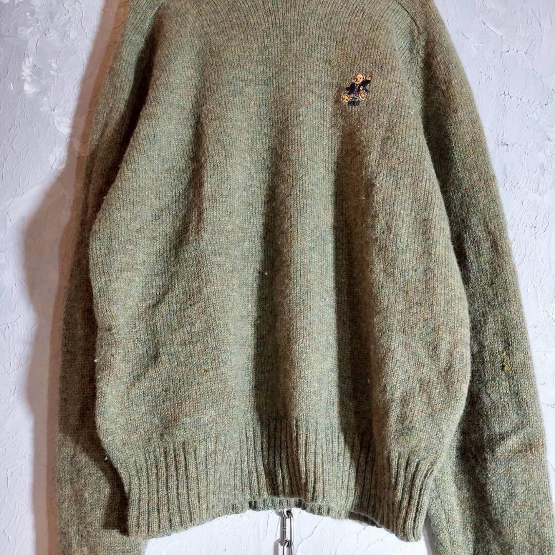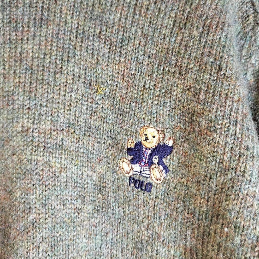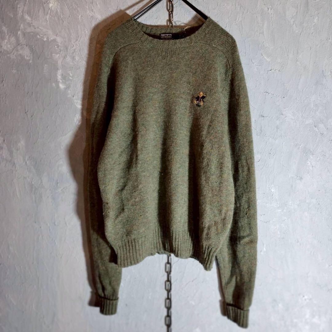 90s POLO Ralph Lauren ポロラルフローレン ポロベア ウールニット セーター 刺繍デザイン カーキ M 古着