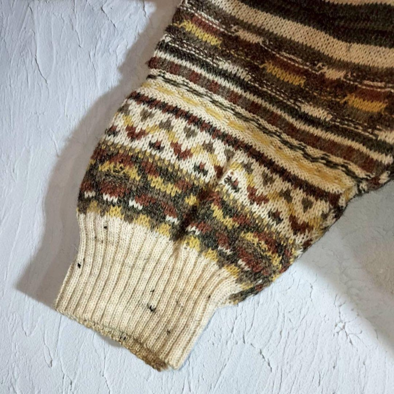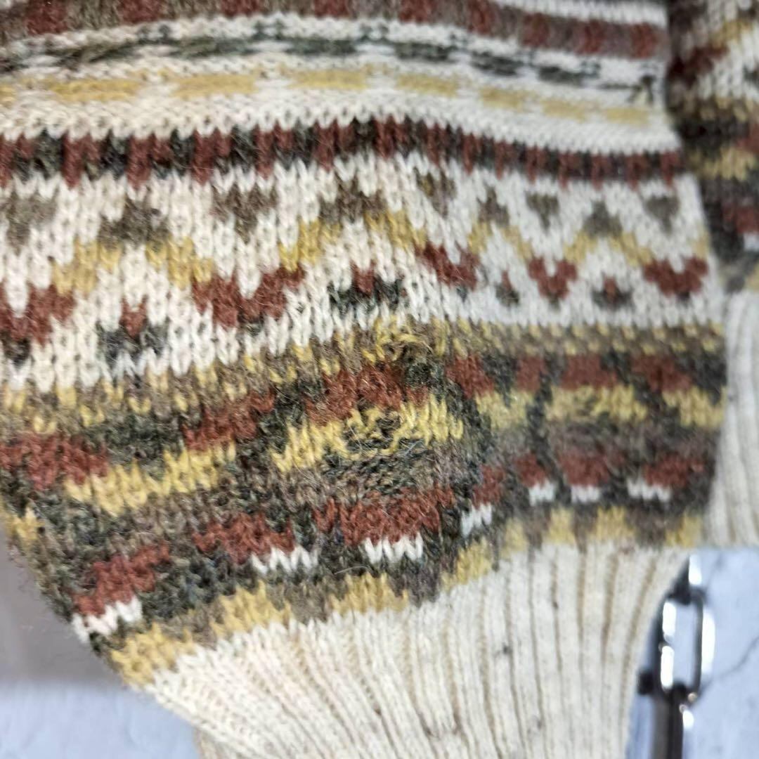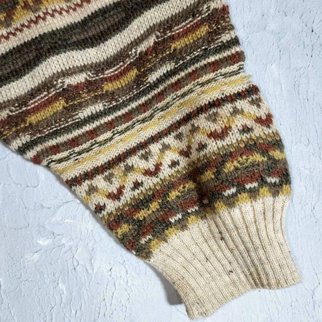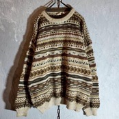 80s イタリア製 3Dニット セーター ウール混 総柄 LL ヴィンテージ ユーロ古着