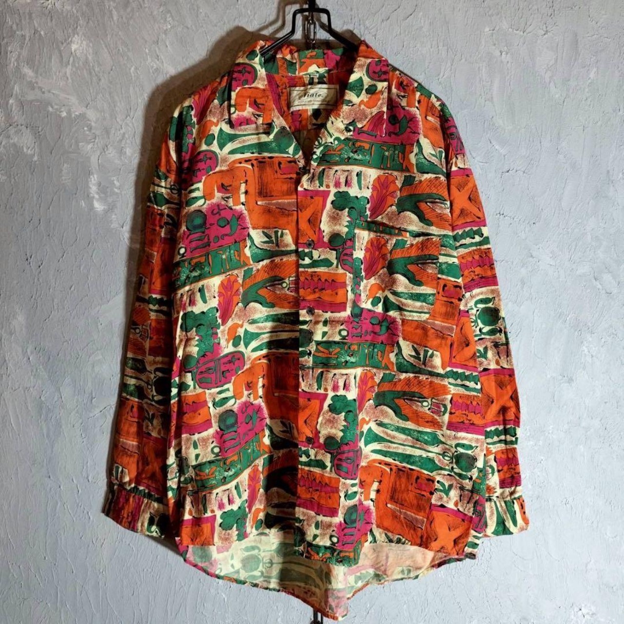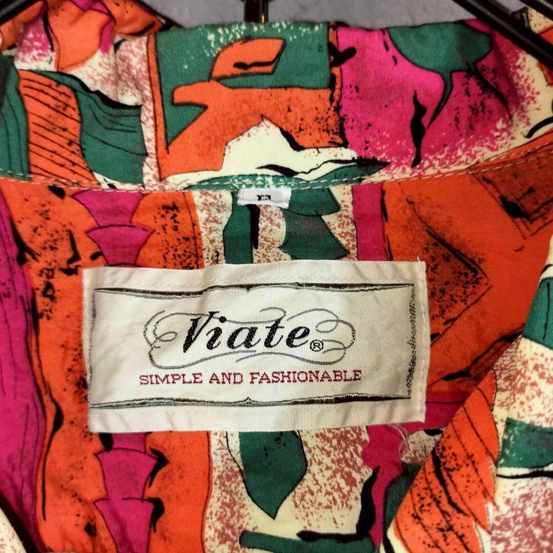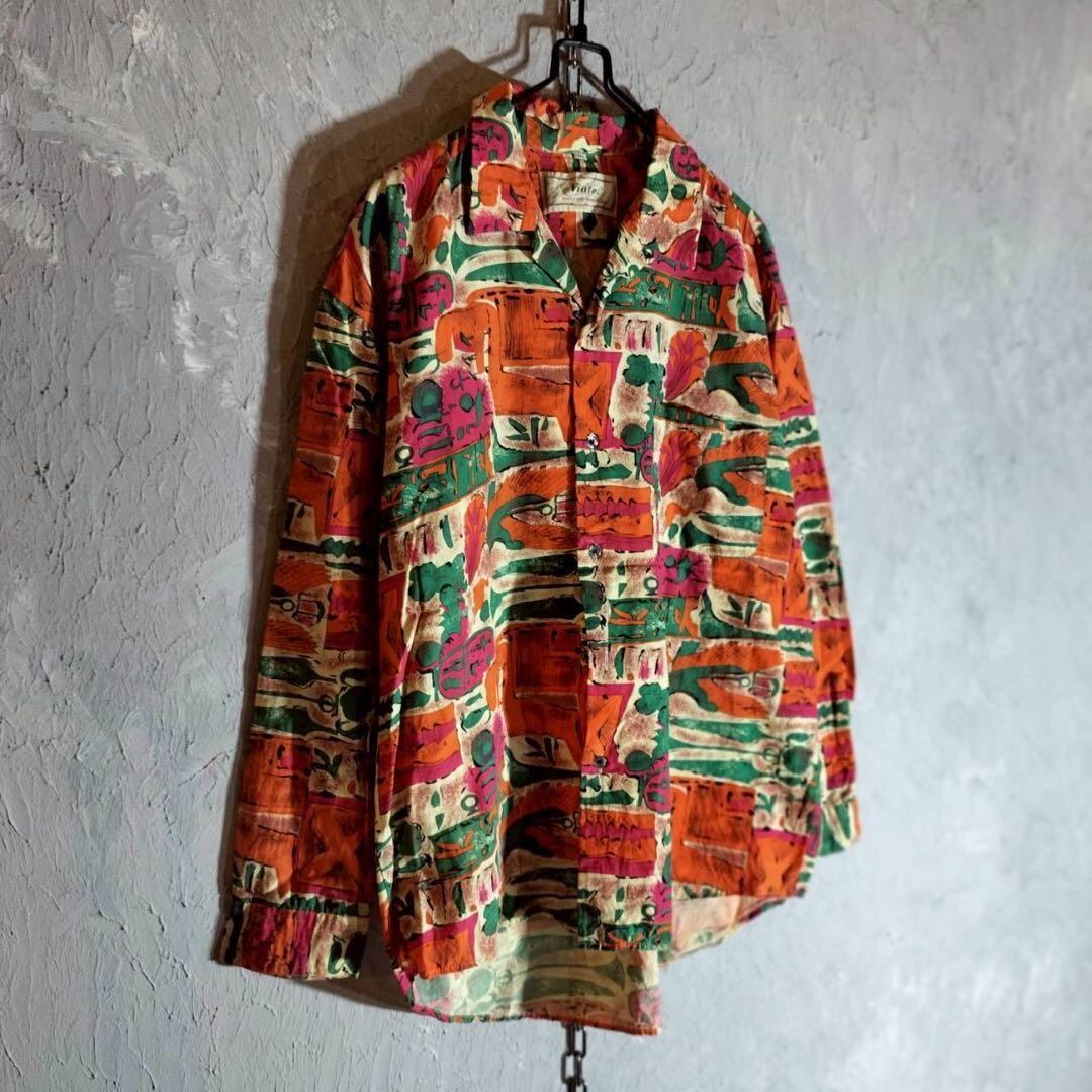 Viate 柄シャツ レーヨンシャツ 長袖 オープンカラー 総柄 レトロ ヴィンテージ 古着