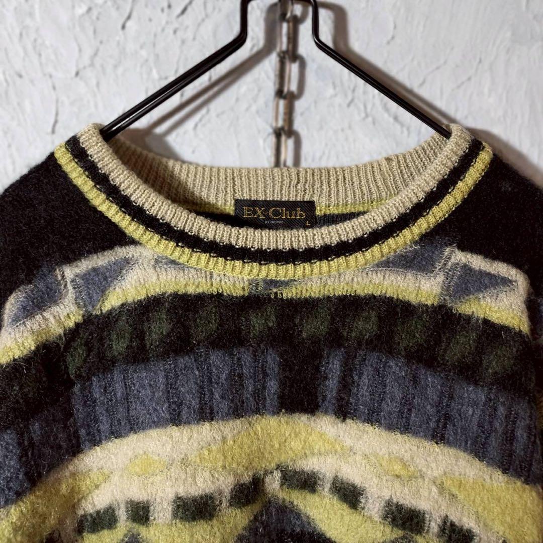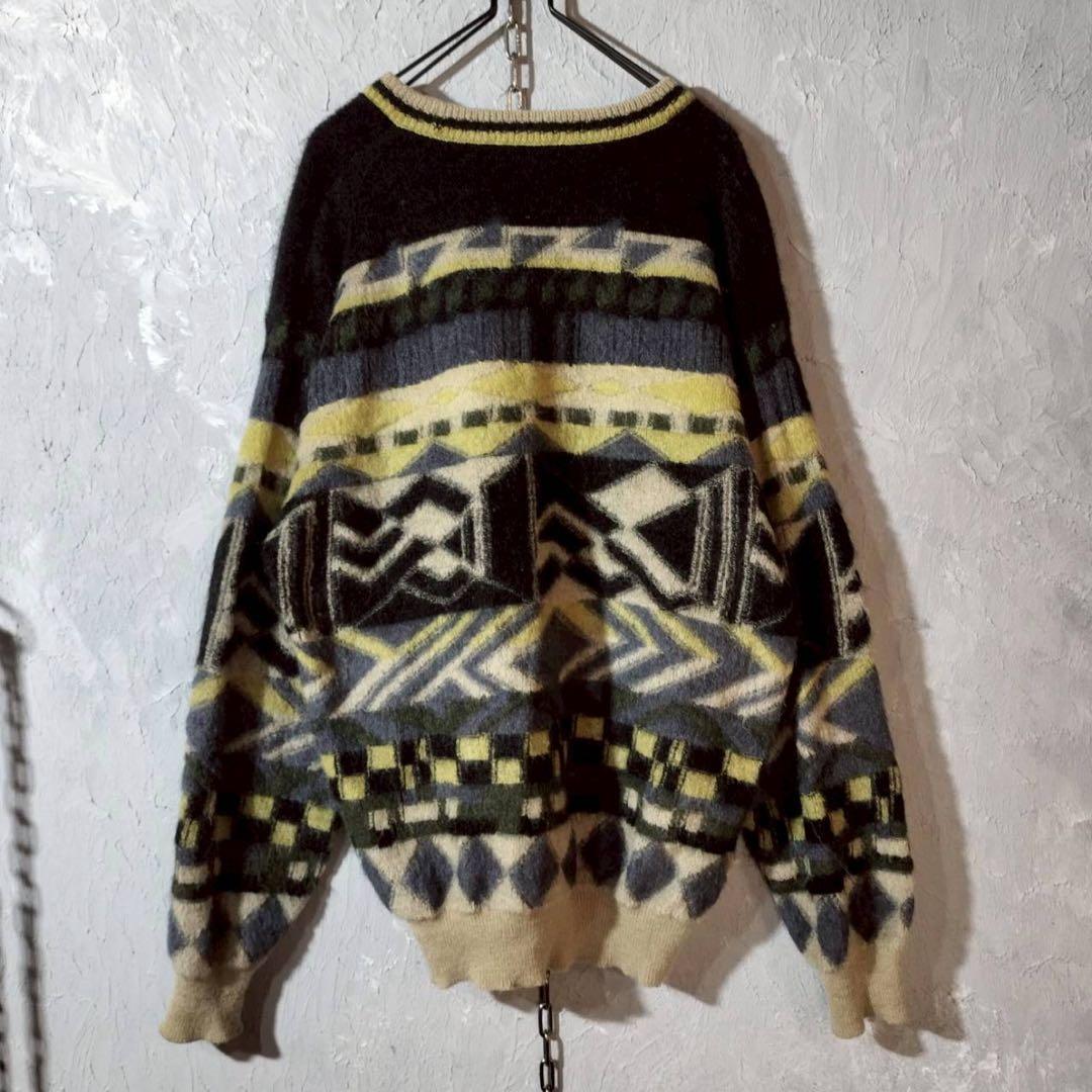 総柄 モヘアニット ウール セーター
