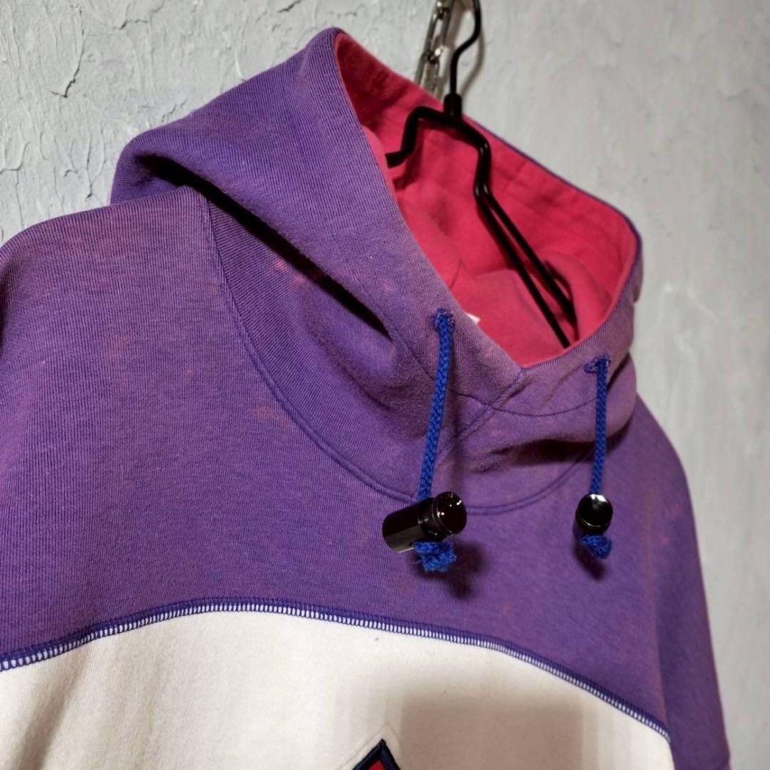 パープル地部分にブリーチによる変色、ポケットの汚れや袖のシミ等見られます、写真にて風合いをご確認ください。