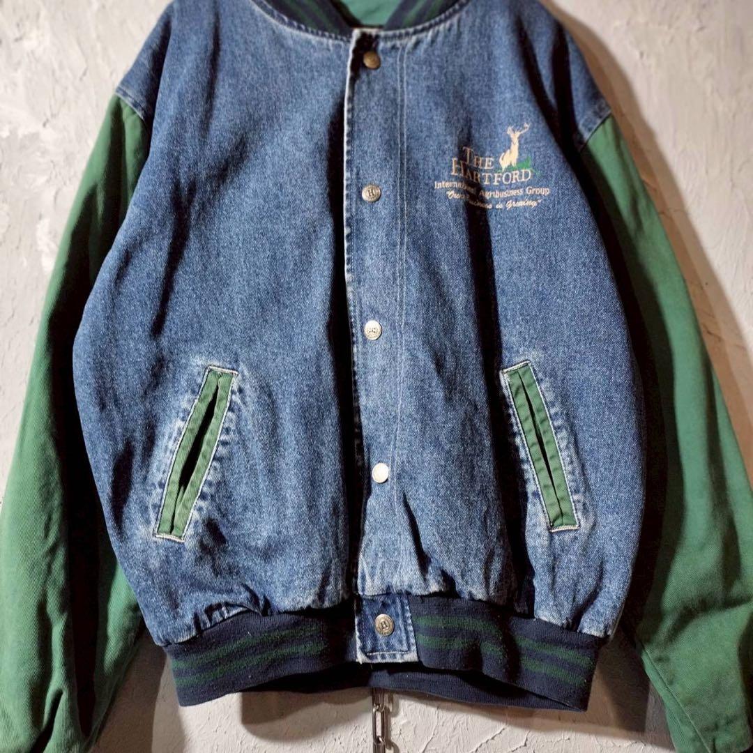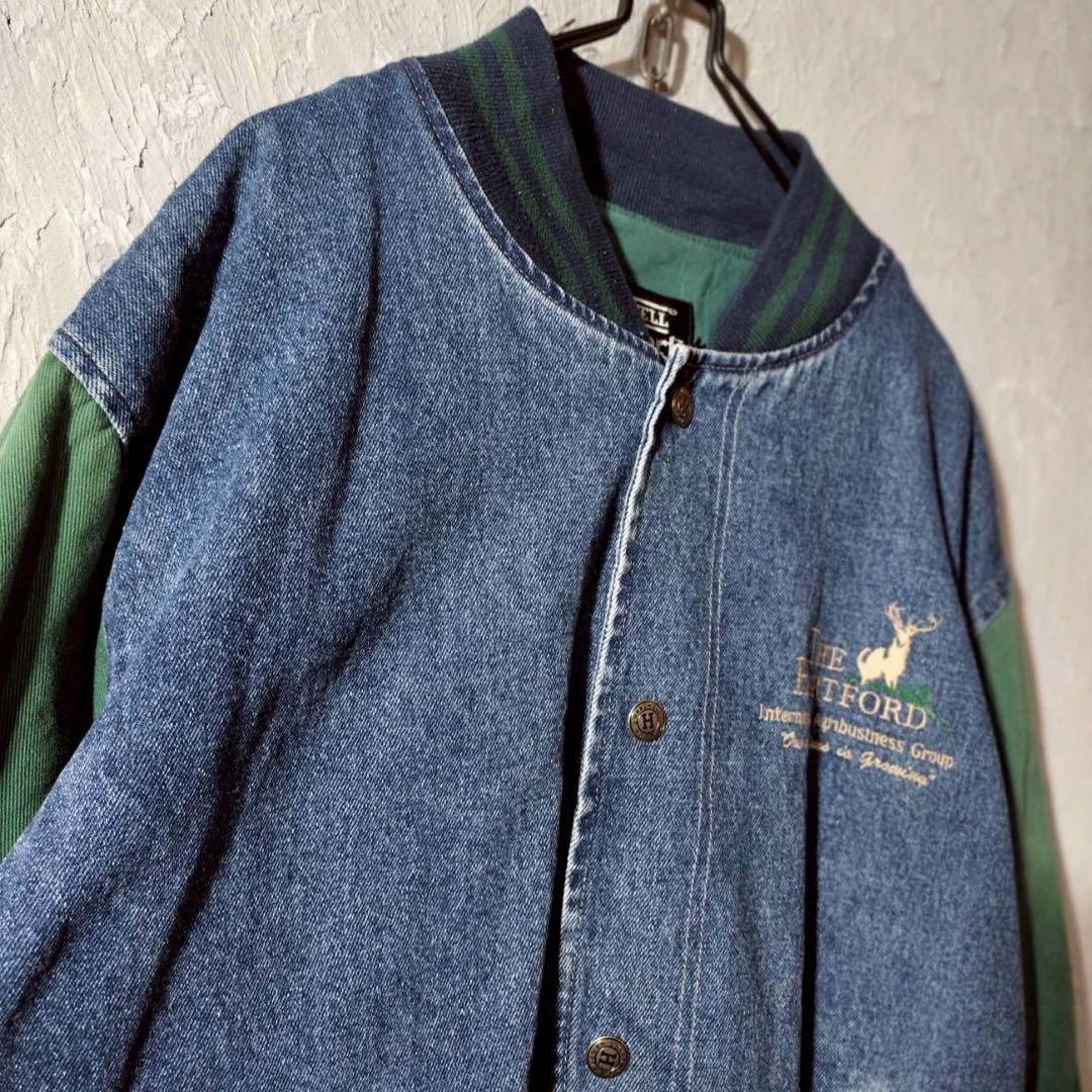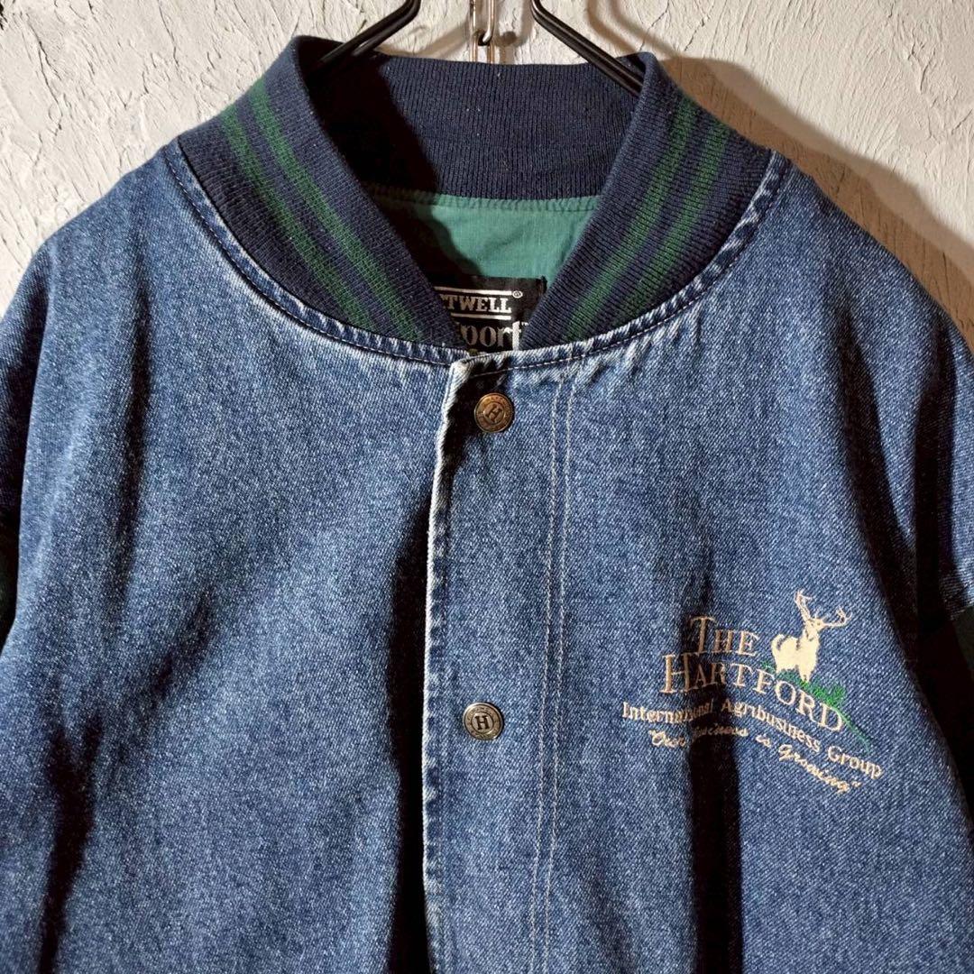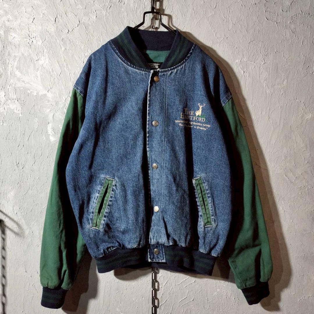 企業ロゴ刺繍 ベースボールジャケット デニムジャケット ワークジャケット 古着.