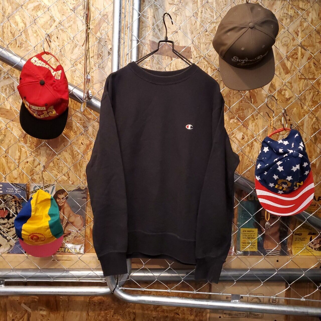 ■ champion チャンピオン ワンポイント刺繍 スウェット トレーナー 古着 ブラック 【V6】