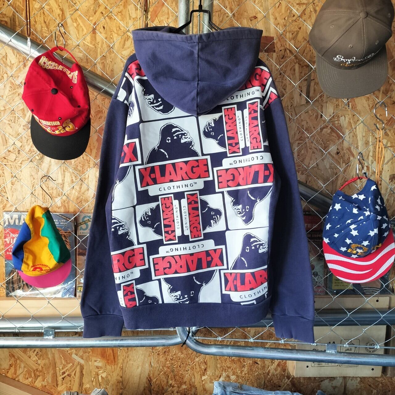 ■ X−LARGE エクストララージ 総柄 バックプリント プルオーバー パーカー スウェット ストリート 古着 【V40】