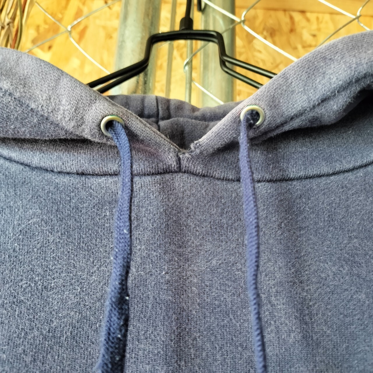 【状態】フードフチ部分中心に全体的に若干の色褪せ・所々に細かな汚れ・襟部分フード付け根のほつれが見られます。
