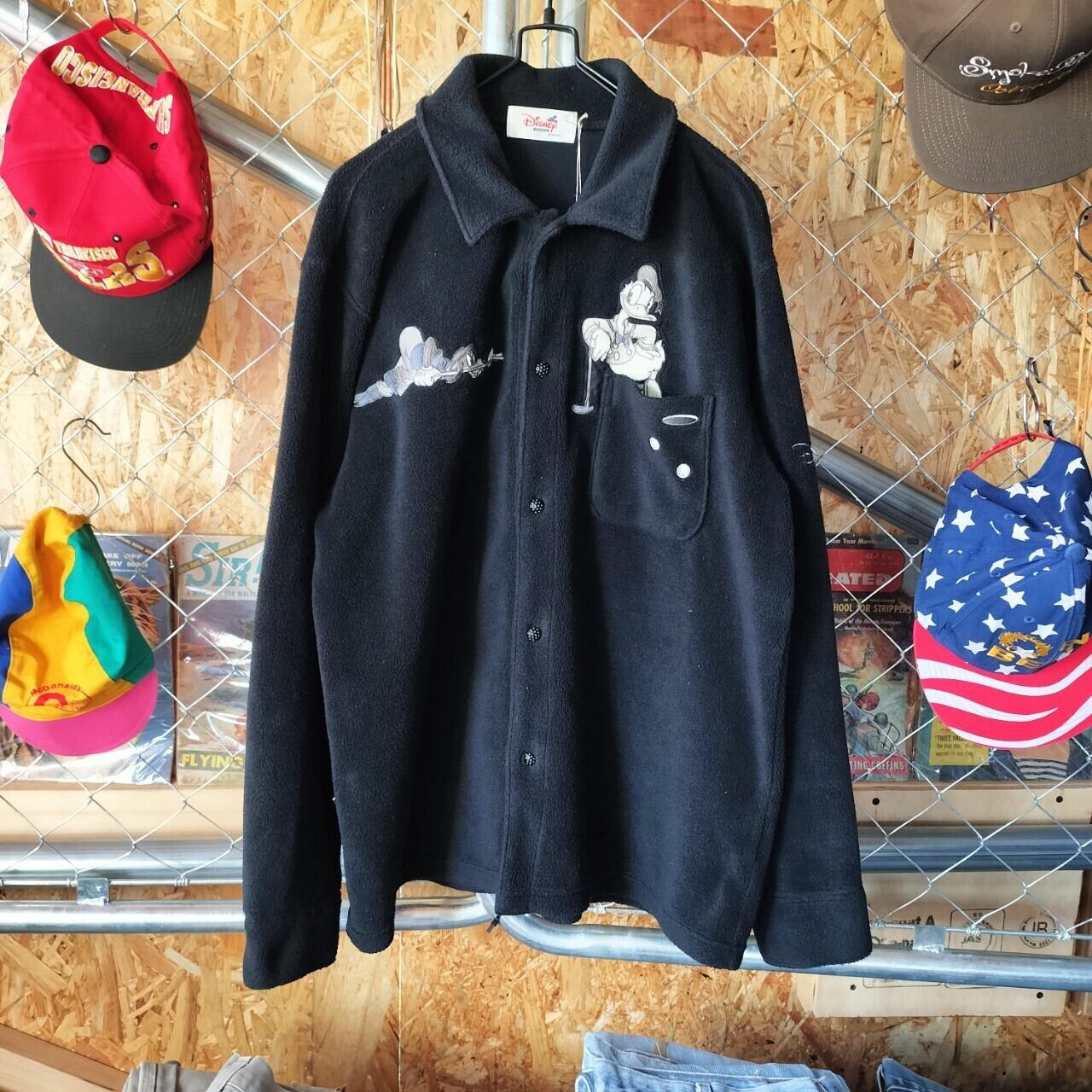 Disney ディズニー 90s 刺繍デザイン フリース 長袖シャツ シャツジャケット ドナルド グーフィー 古着 【V46】