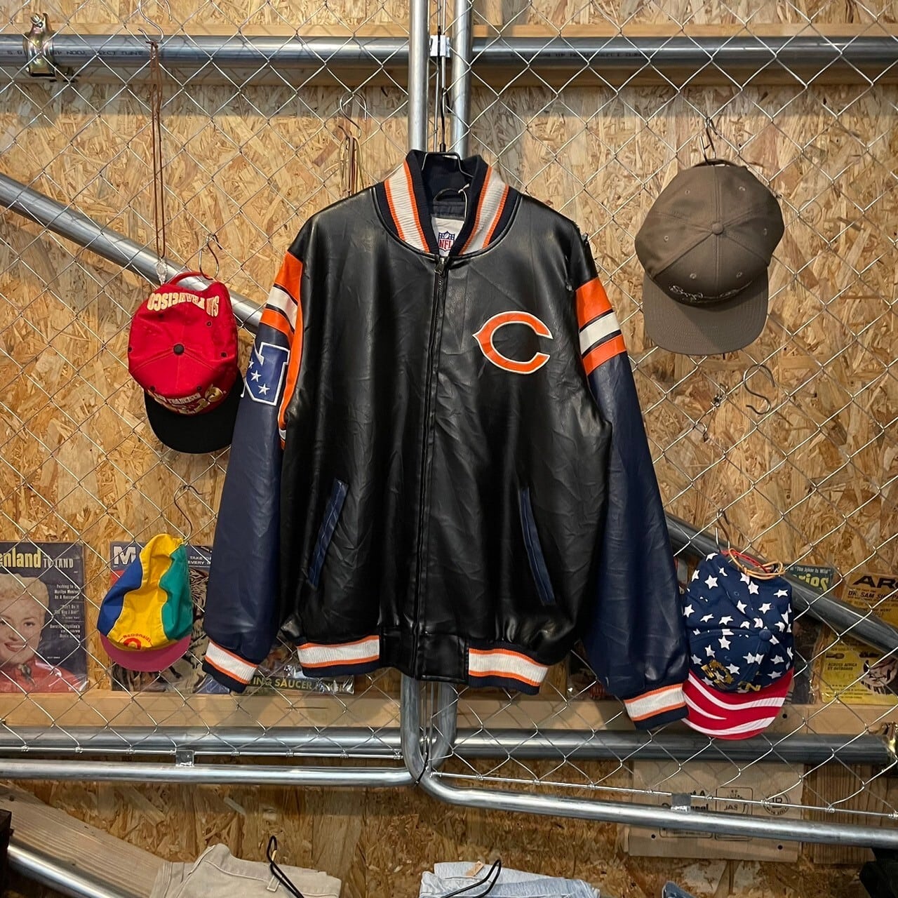 ■ ヴィンテージ NFL シカゴベアーズ バックロゴ 刺繍 スタジャン ブルゾン フェイクレザージャケット ビッグサイズ アメリカ古着 【V63】