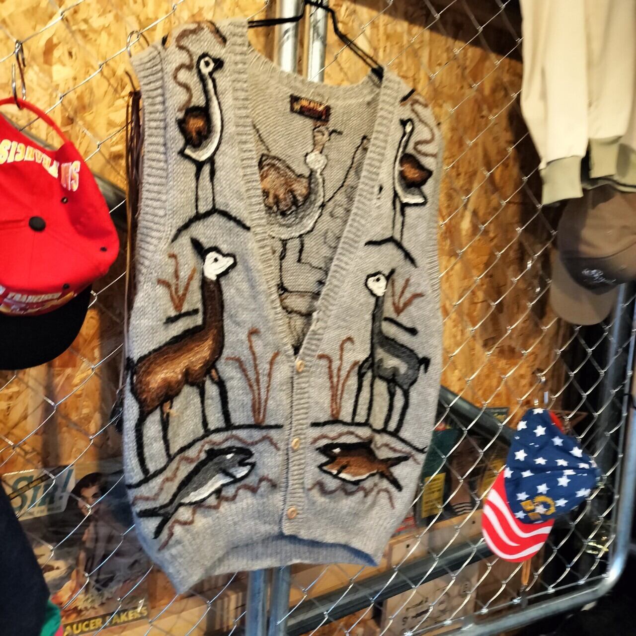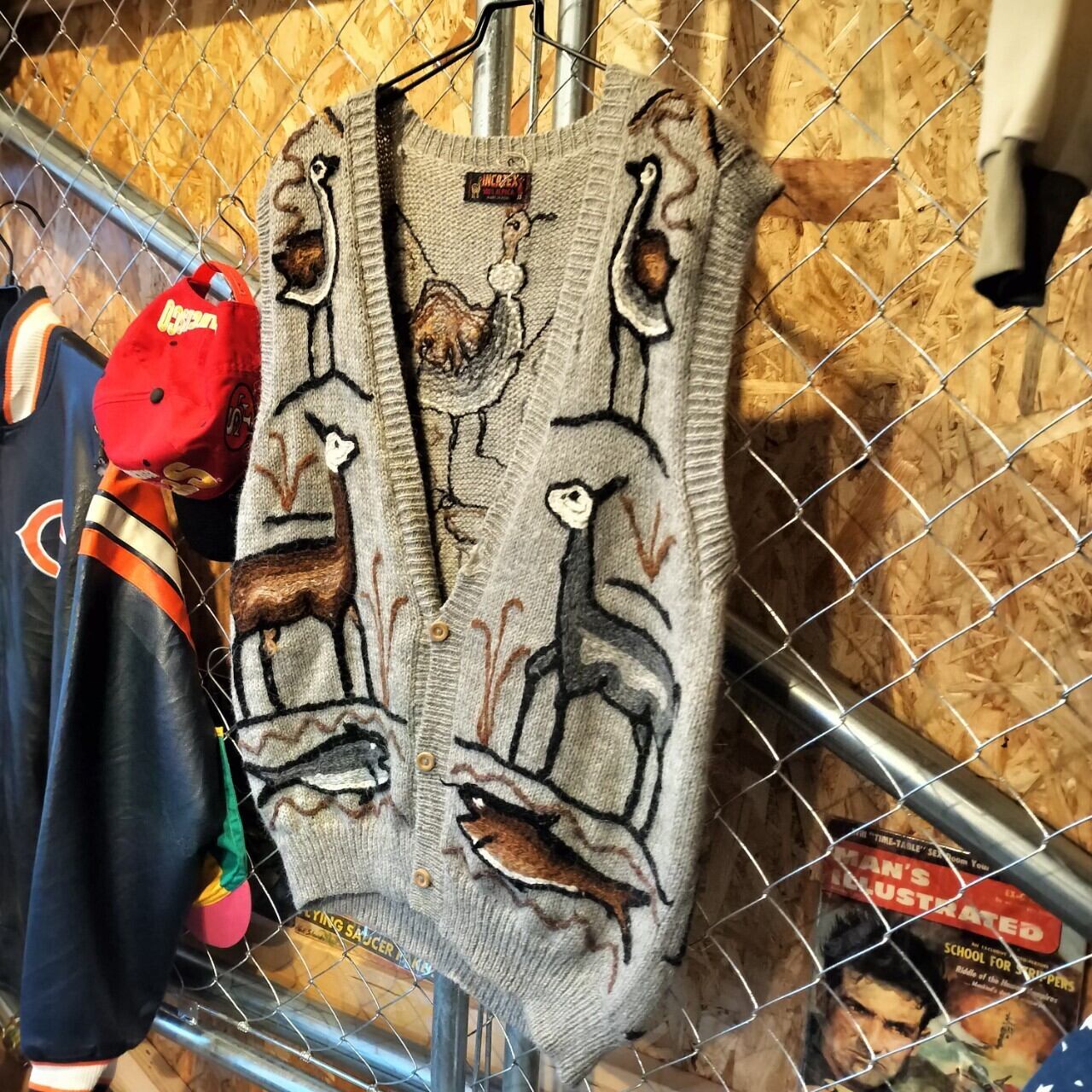 ■ ヴィンテージ レトロ ネイティブ アニマル柄 アルパカニット ベスト ペルー製 古着 【V86】