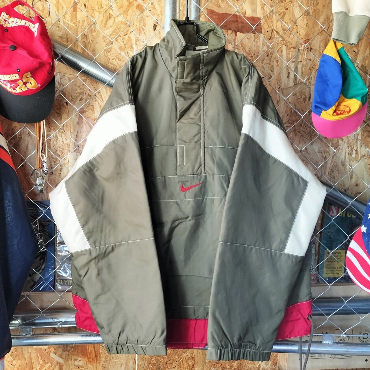 NIKE ナイキ 90s ヴィンテージ バックロゴ ハーフジップ ナイロンジャケット アノラックジャケット 古着 【V122】