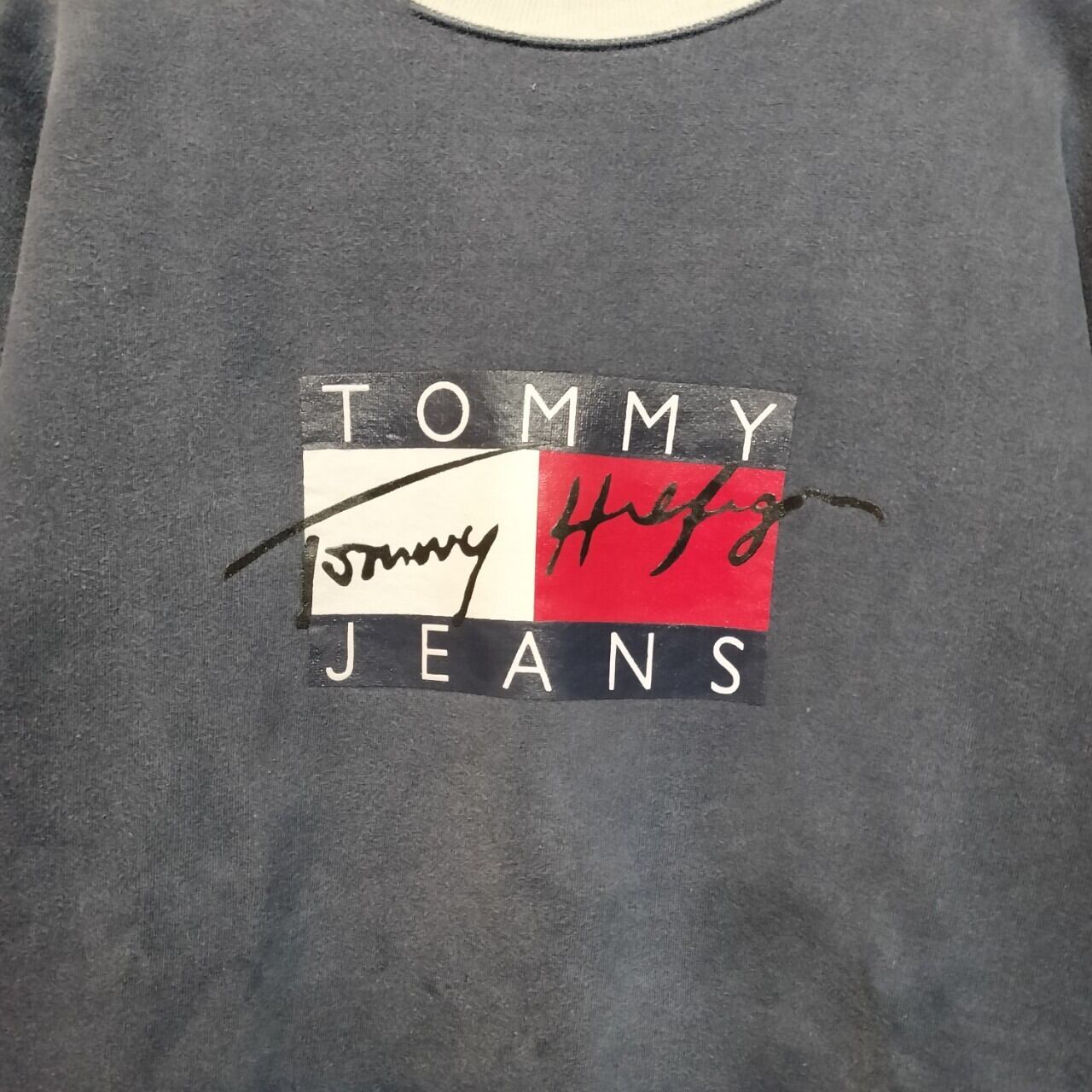 ■ TOMMY HILFIGER トミーヒルフィガー トミージーンズ 90s ヴィンテージ スウェットトレーナー ユニセックス ネイビー 古着 【V143】
