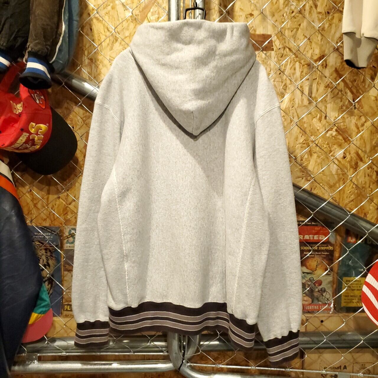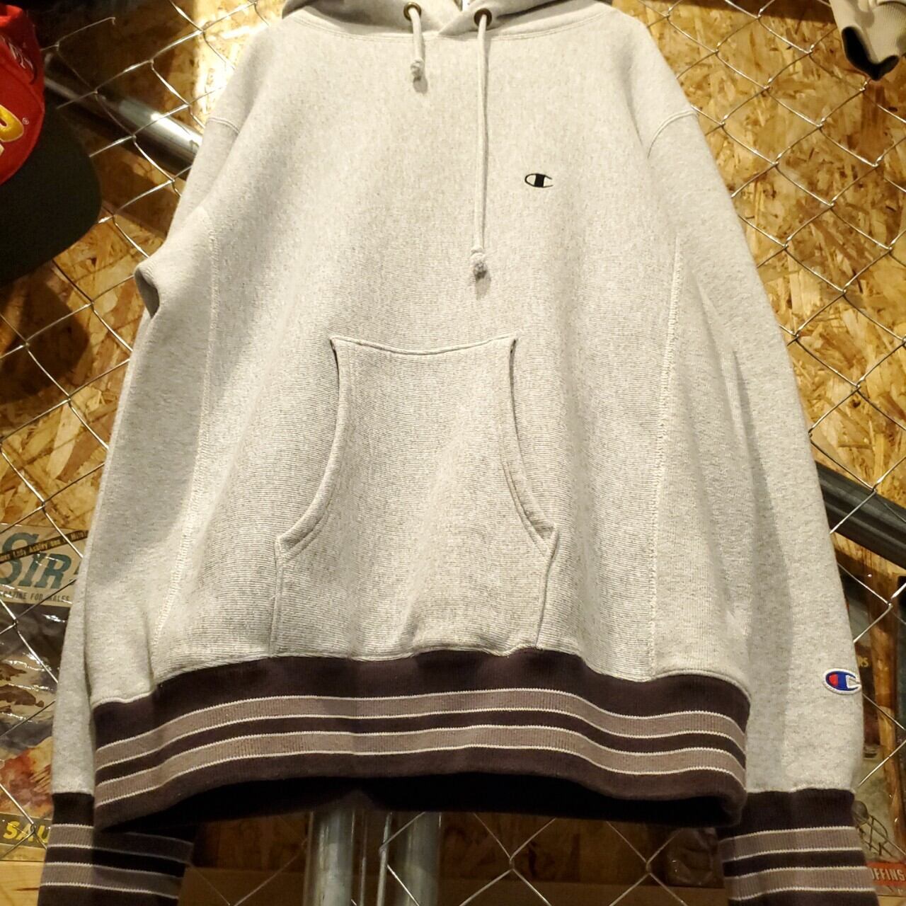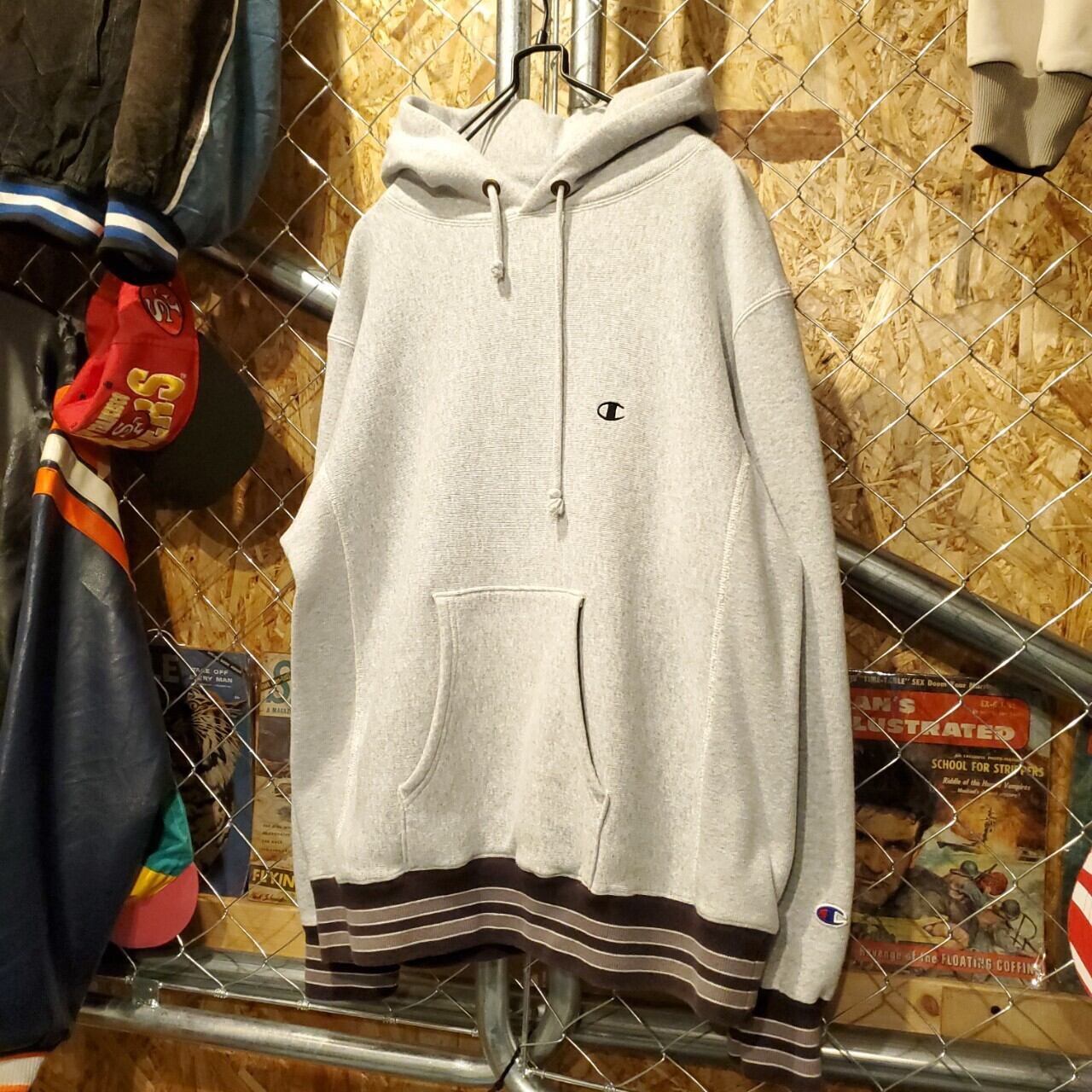 champion チャンピオン ボーダーリブ リバースウィーブ プルオーバー スウェットパーカー グレー 古着 【V159】