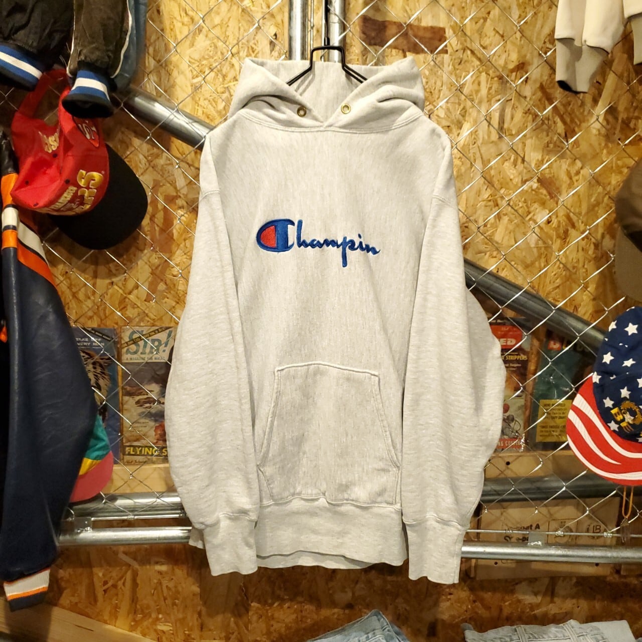 champion チャンピオン 90s USA製 ヴィンテージ 刺繍ロゴ リバースウィーブ プルオーバー スウェットパーカー グレー 刺繍タグ 古着 【V161】