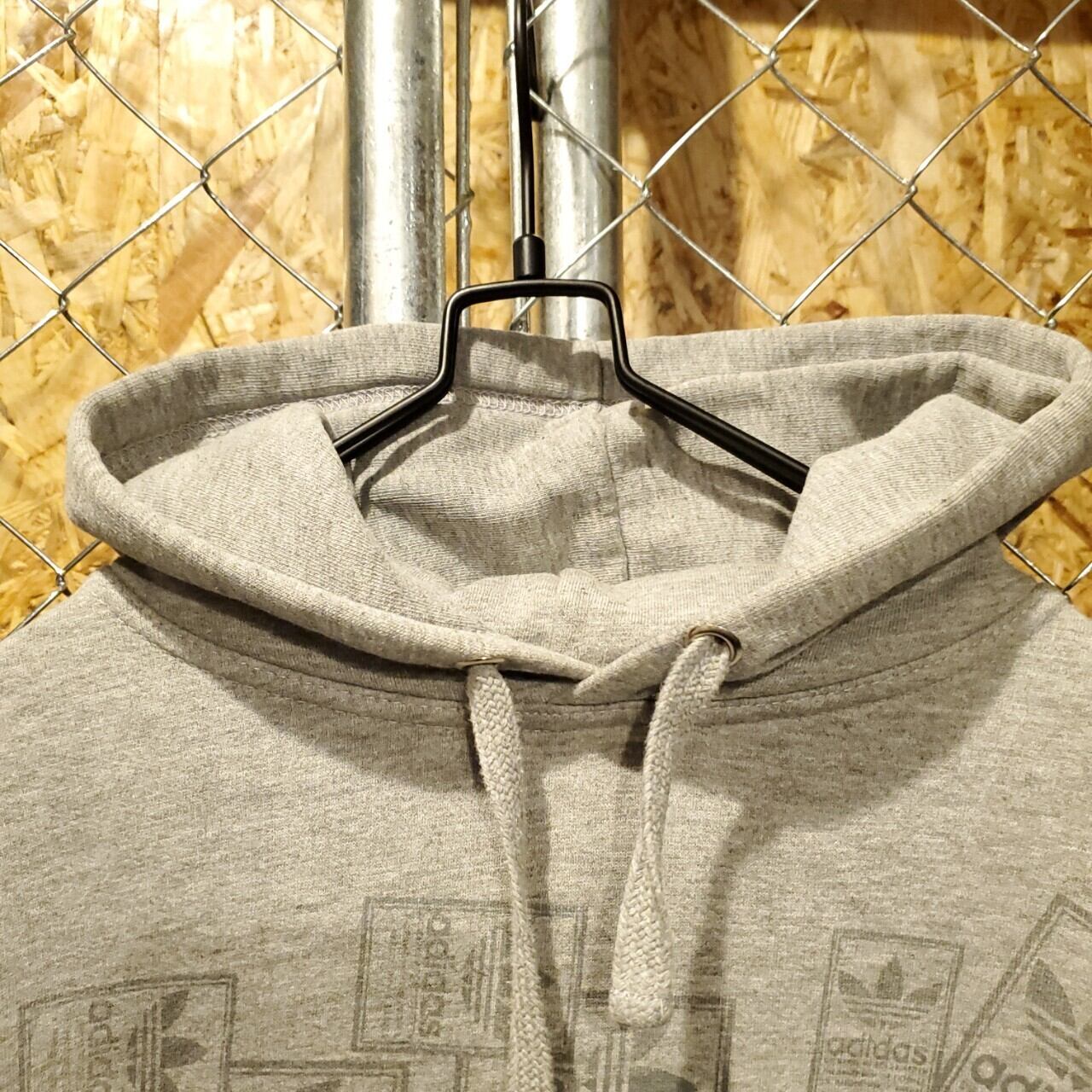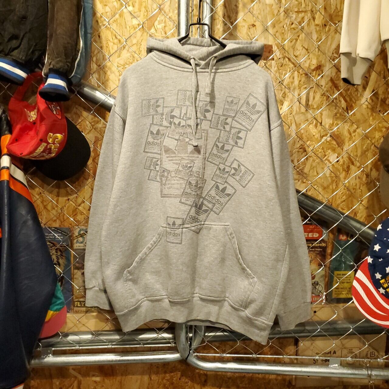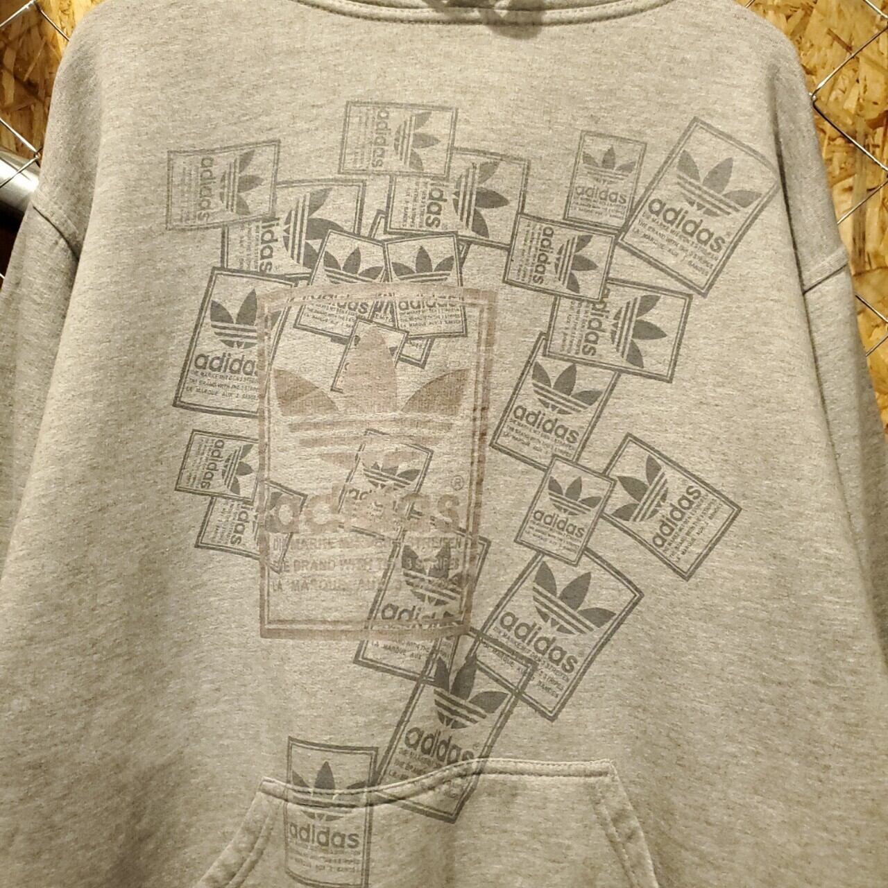adidas アディダス ヴィンテージ ビッグロゴ シュータンプリント プルオーバー スウェットパーカー ユニセックス グレー 古着 【V163】