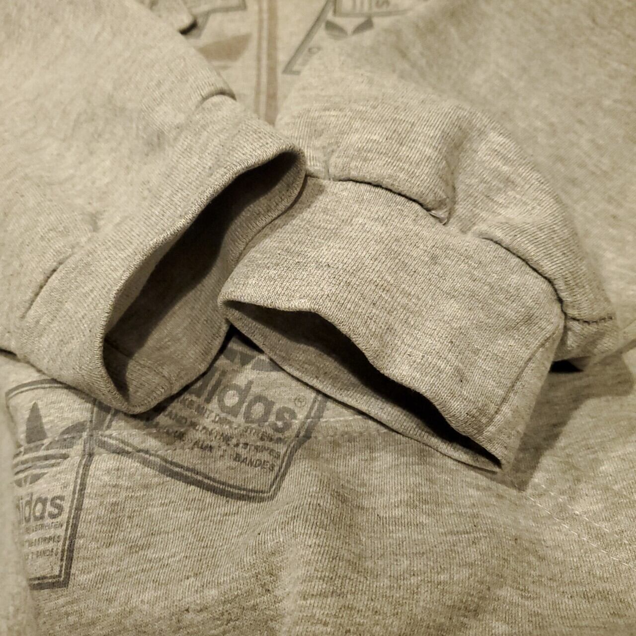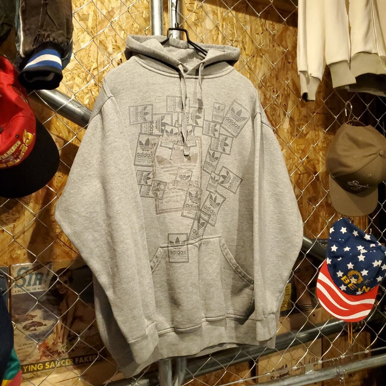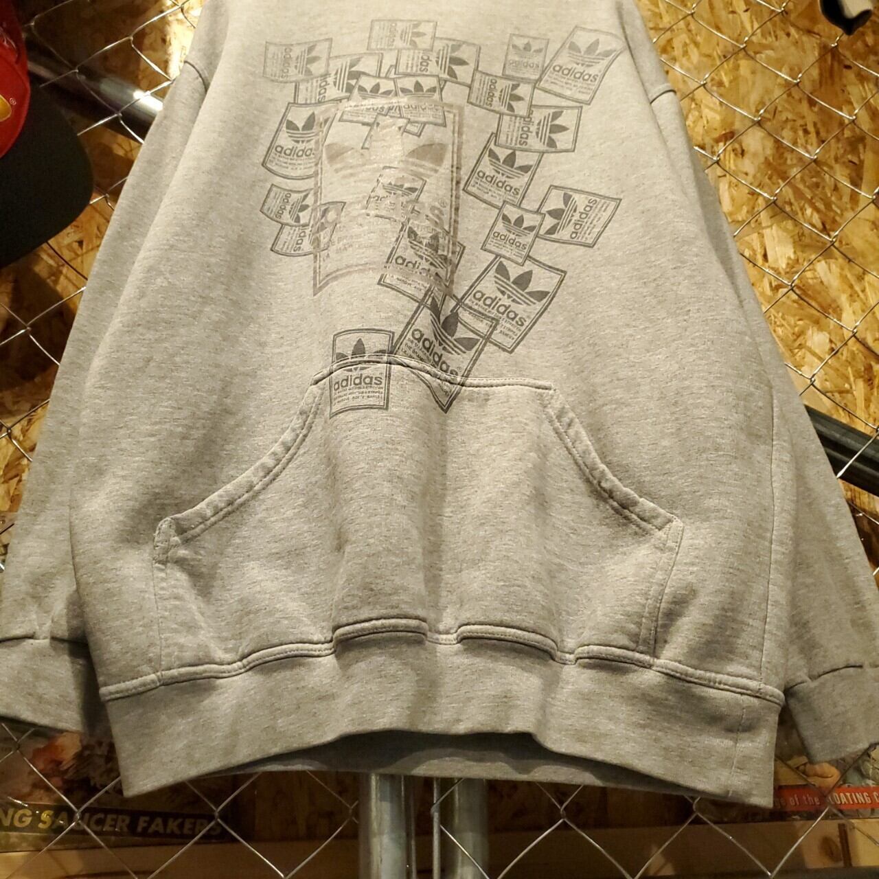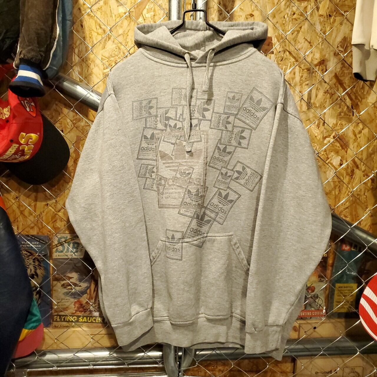 adidas アディダス ヴィンテージ ビッグロゴ シュータンプリント プルオーバー スウェットパーカー ユニセックス グレー 古着 【V163】