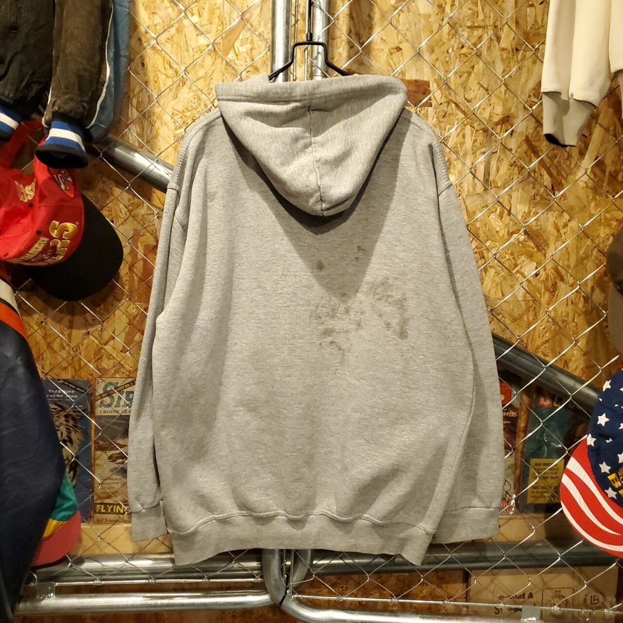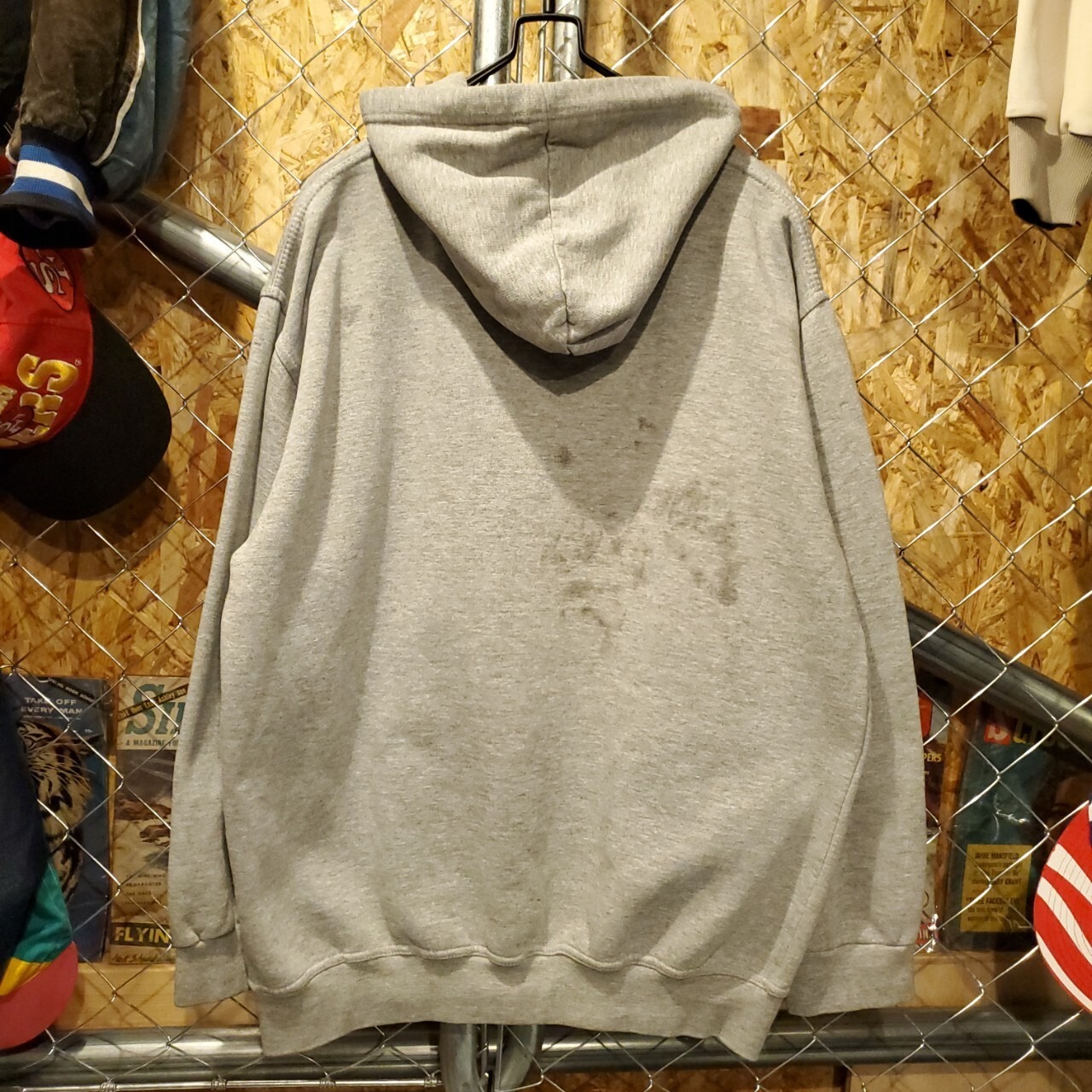 【状態】バックに黒い汚れ・フードフチ、襟裏に若干の変色。袖リブのヨレが見られます。