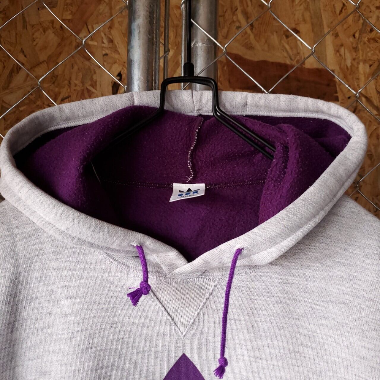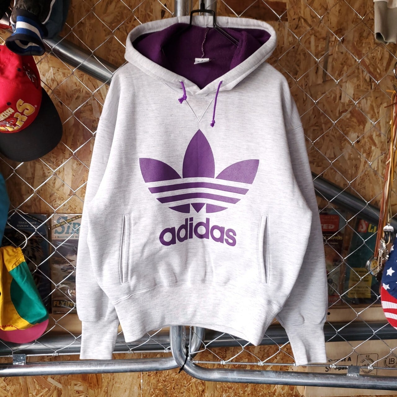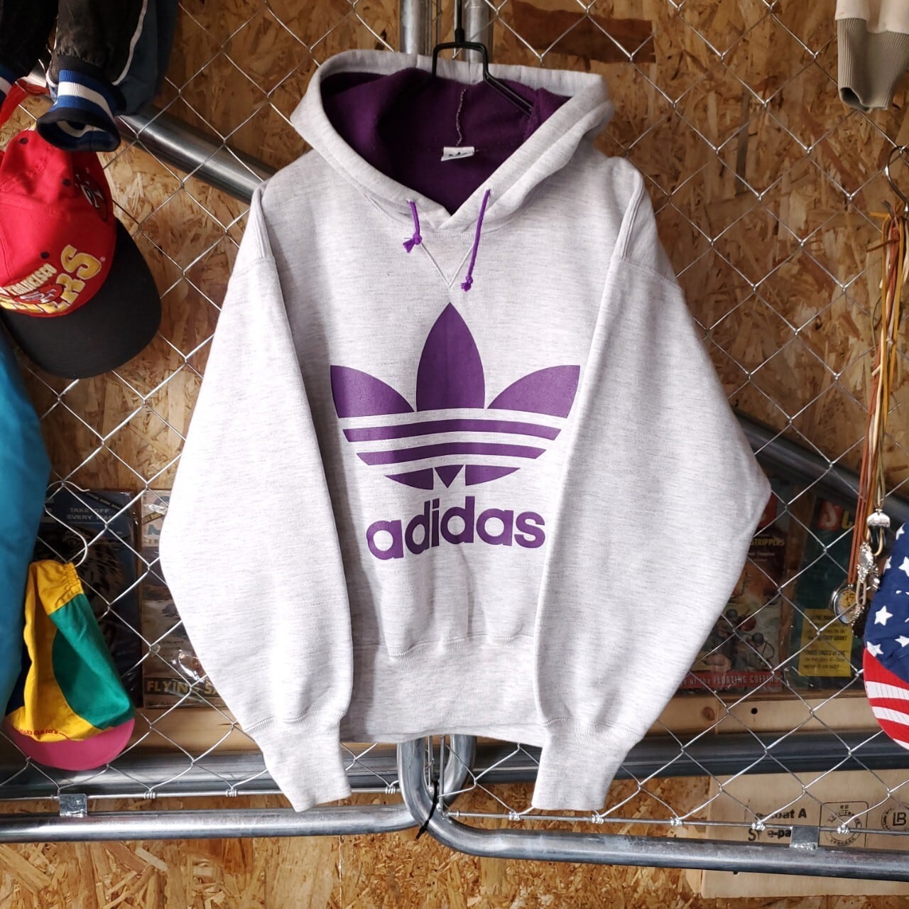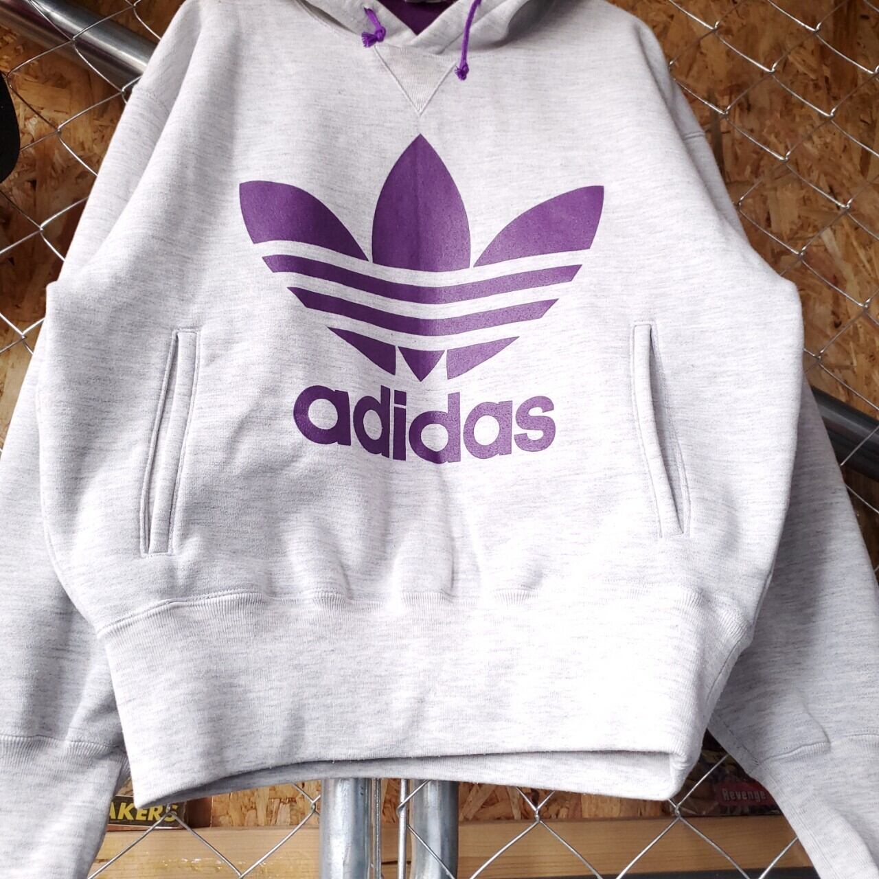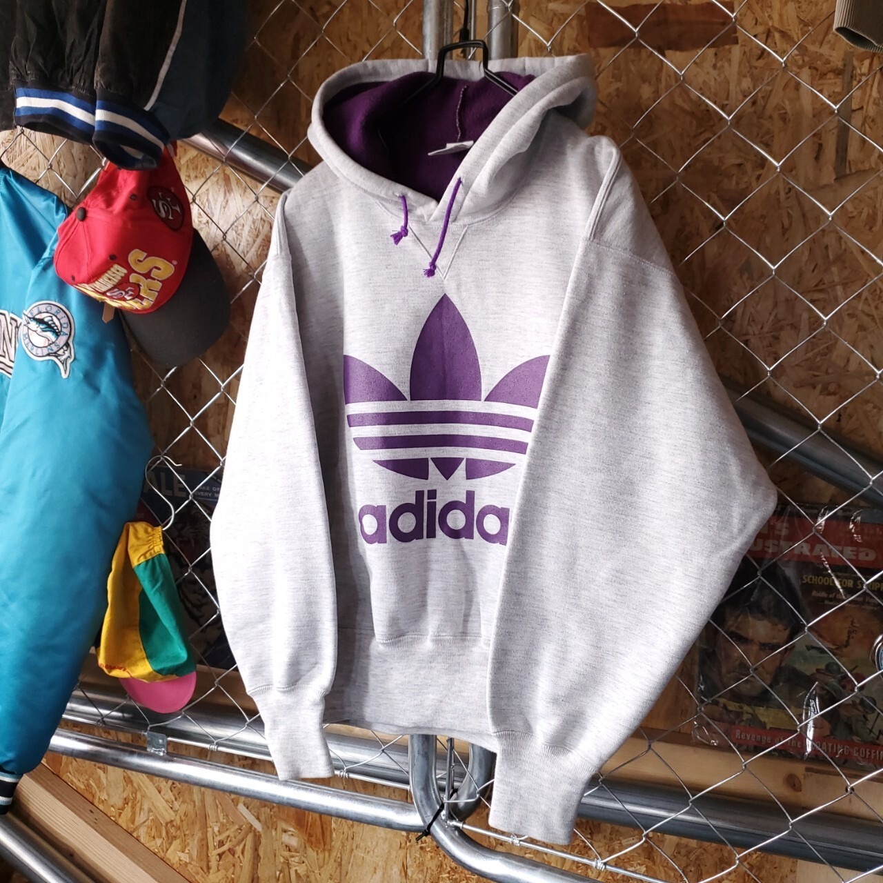 80年代のレトロな雰囲気が漂うadidasのスウェットパーカー。