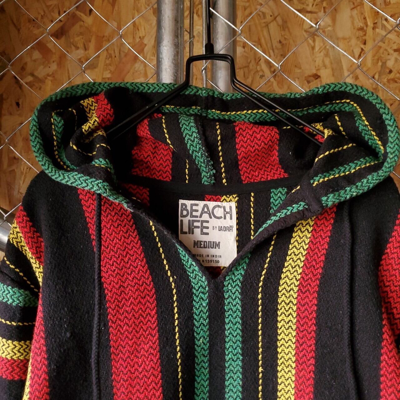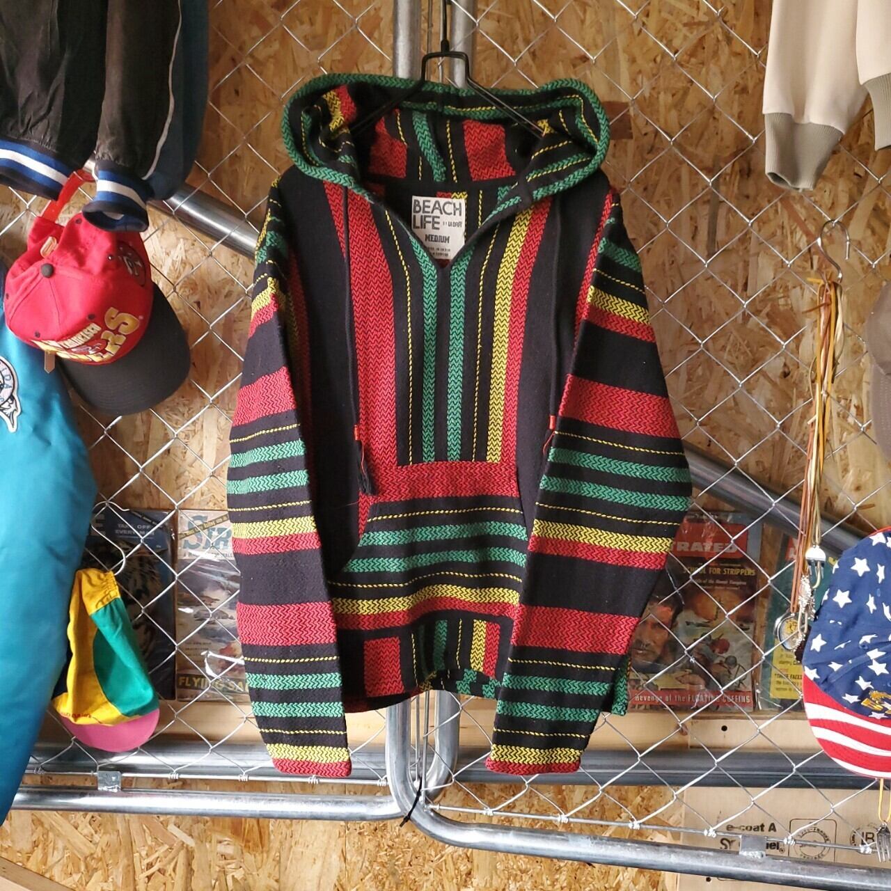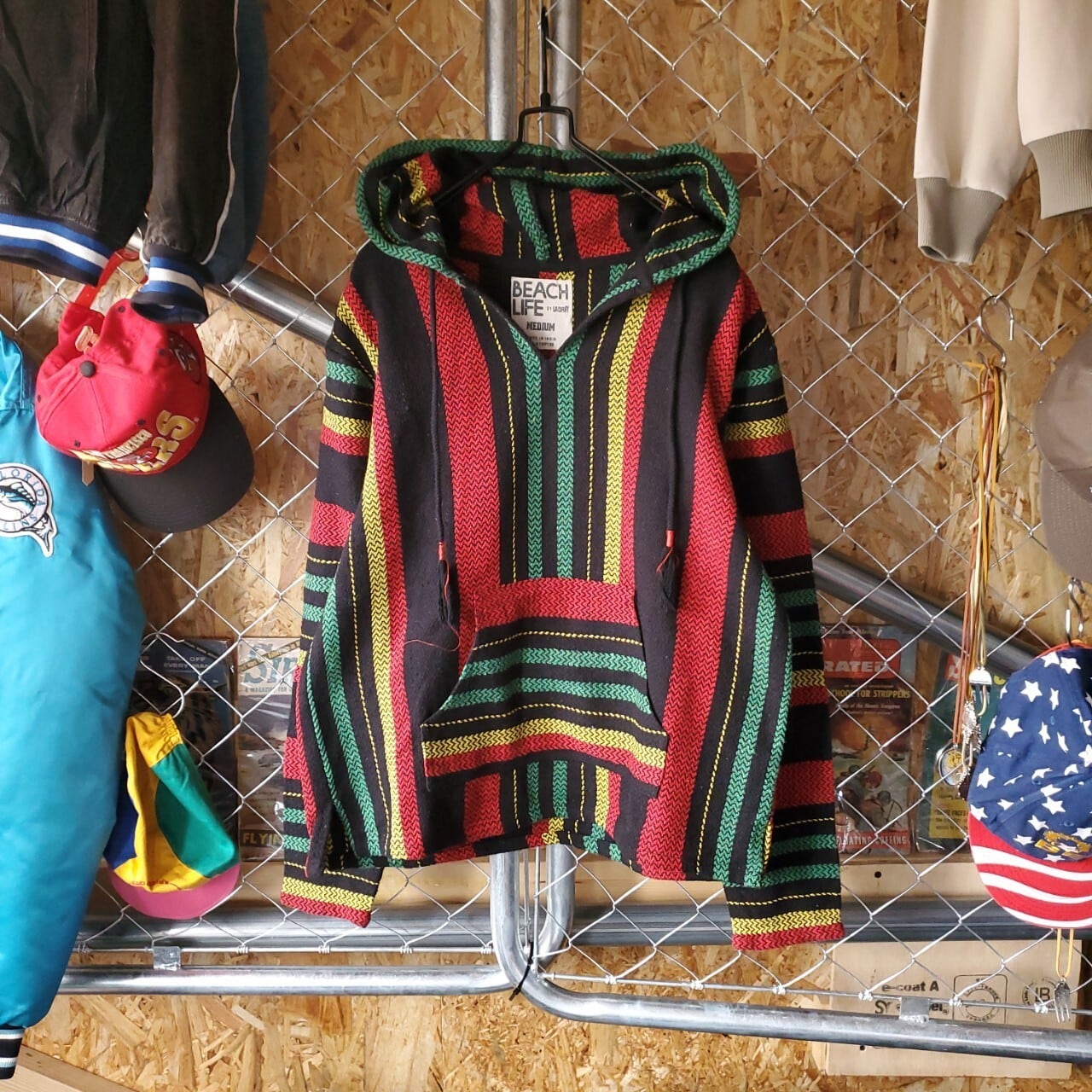 ヴィンテージ ラスタカラー メキシカンパーカー マルチカラー ネイティブ プルオーバー フーディー ストリート アメカジ エスニック ユニセックス 古着 【V180】