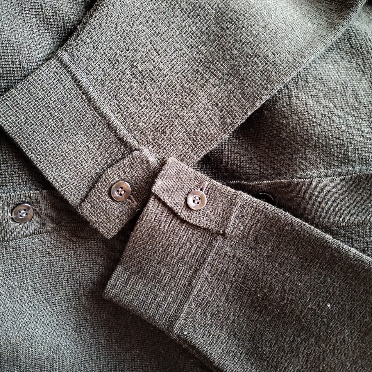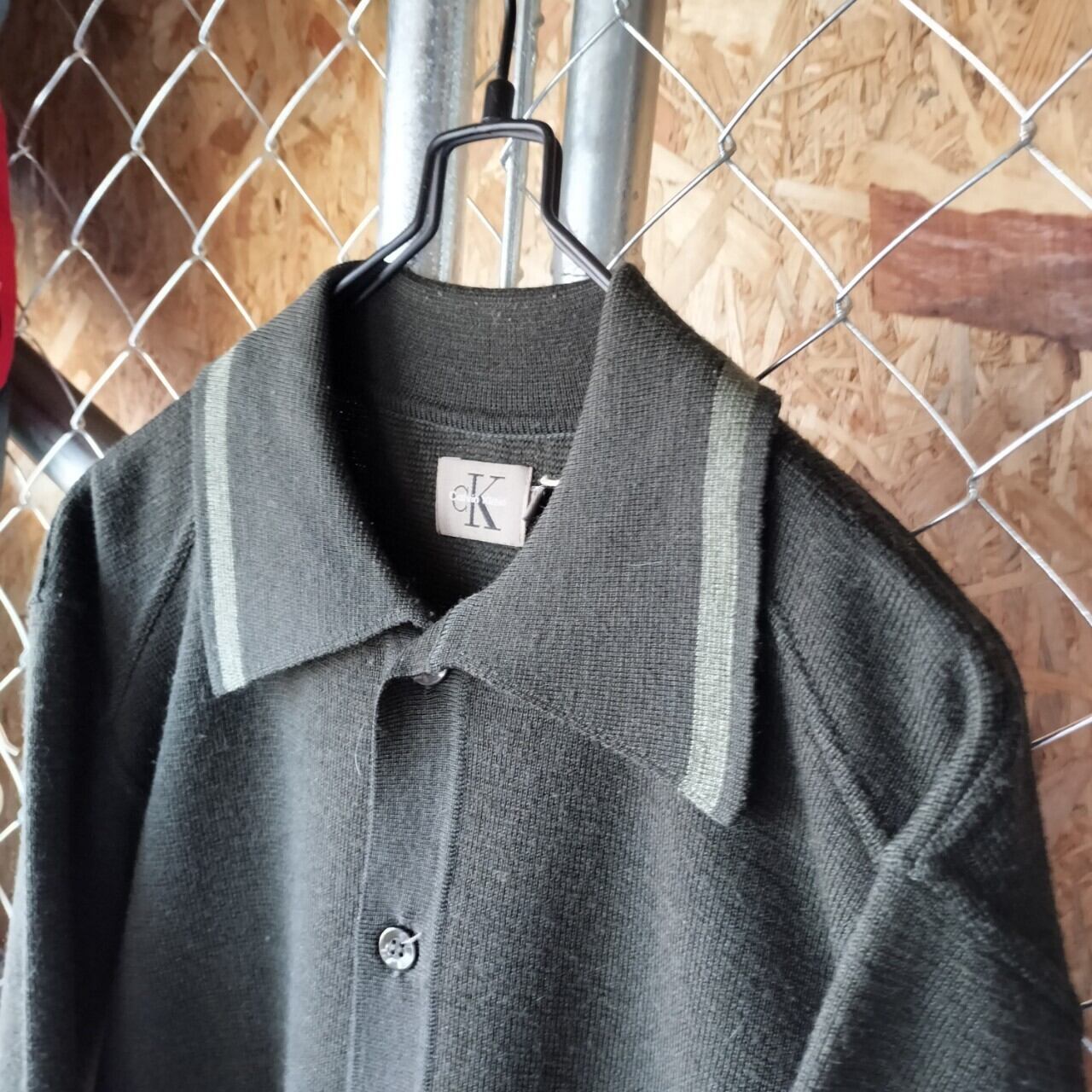 Calvin Klein カルバンクライン 90s ヴィンテージ 襟付きニットカーディガン ニットシャツ カーキ セーター レトロ ユニセックス アメカジ 古着 【V257】