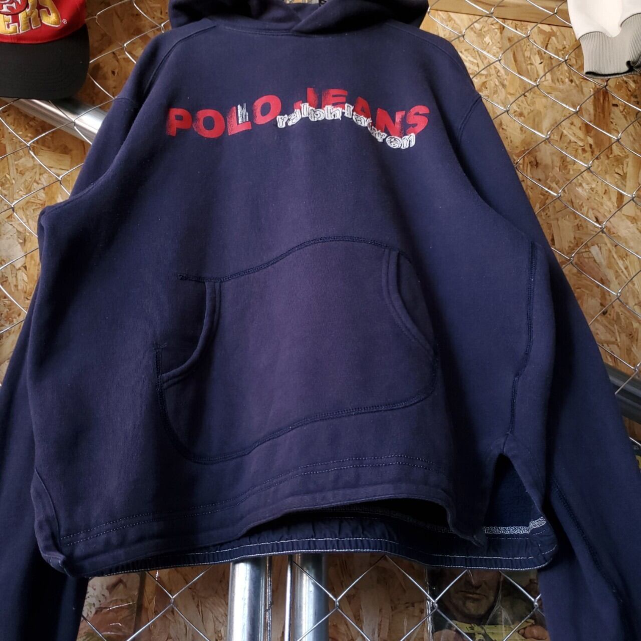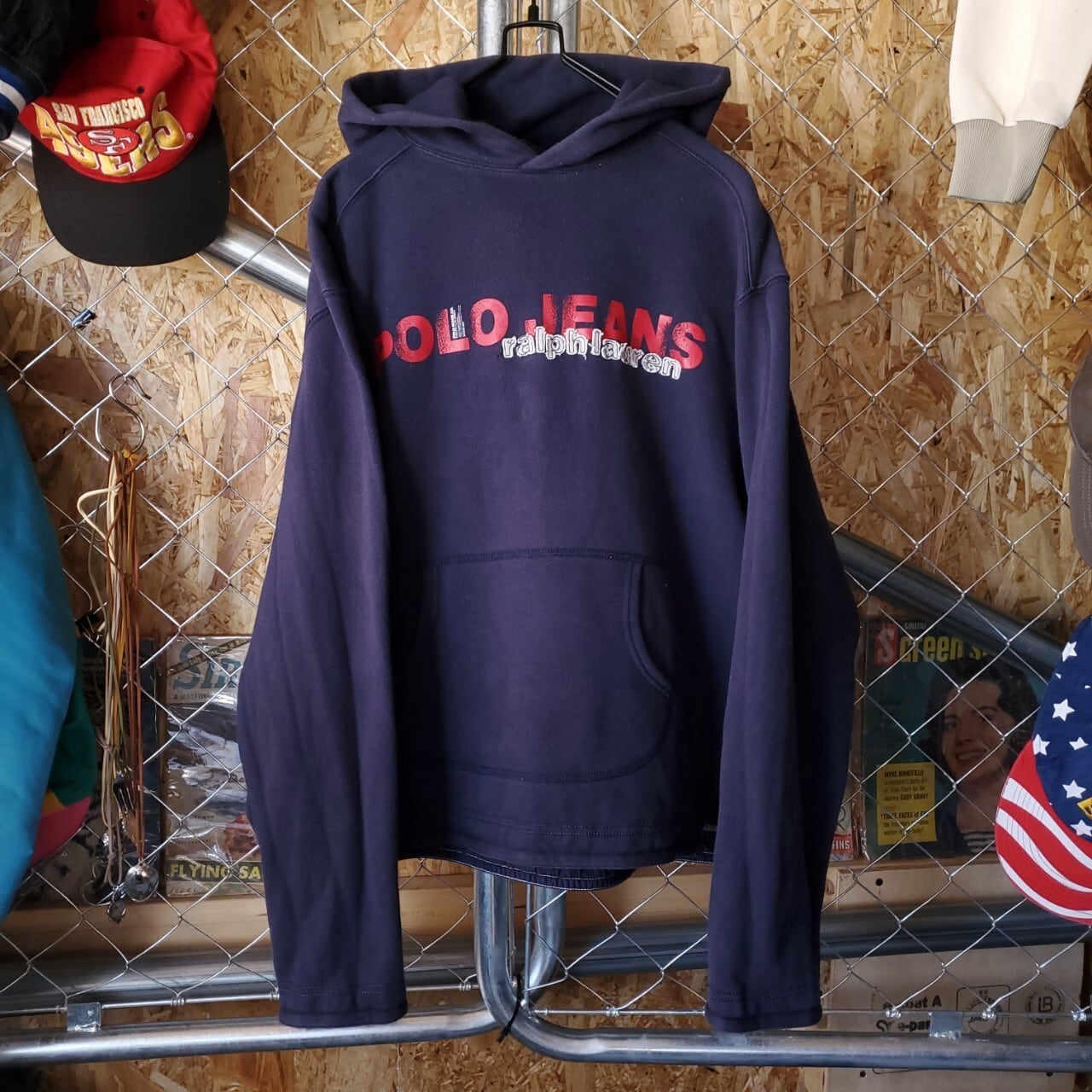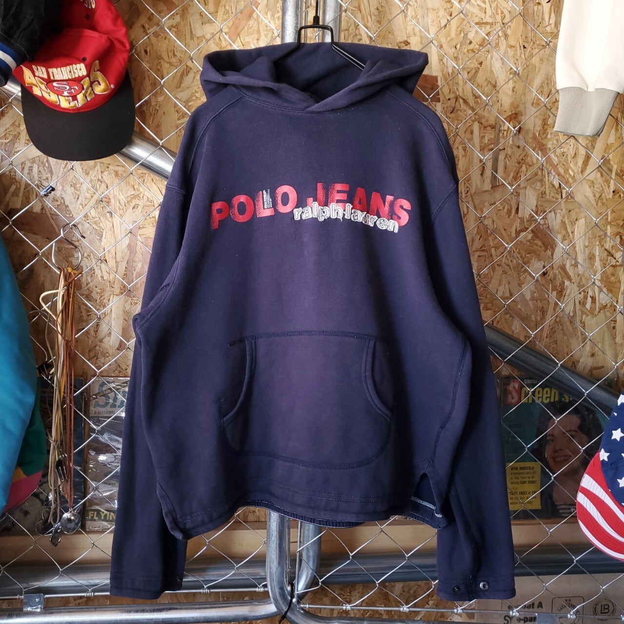 ■ POLO JEANS ポロジーンズ ビッグロゴ スウェットパーカー プルオーバー フーディー 人気カラー ネイビー ユニセックス ポロラルフローレン 古着