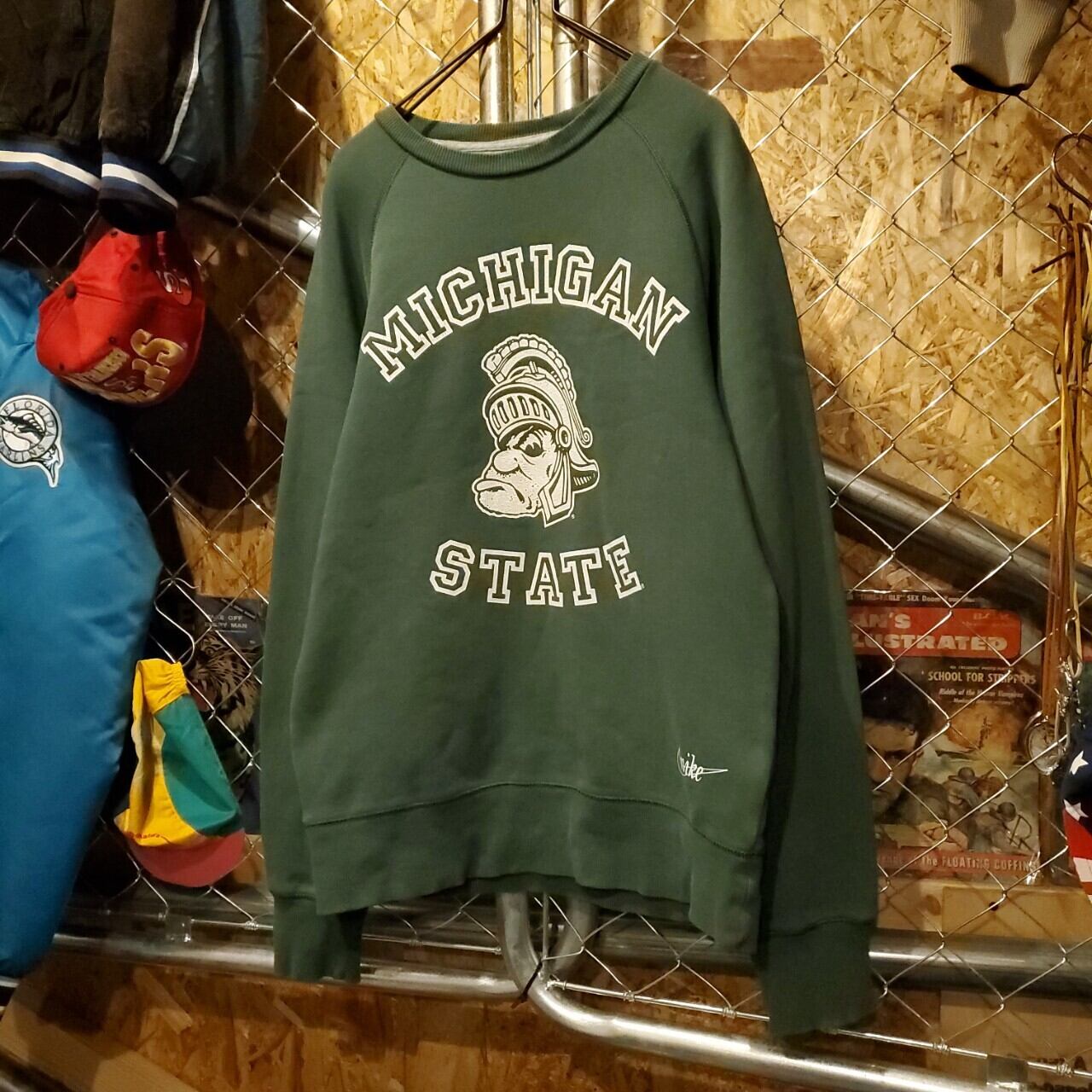 NIKE ナイキ カレッジロゴ スウェット トレーナー 人気カラー グリーン ユニセックス 古着 【V125】