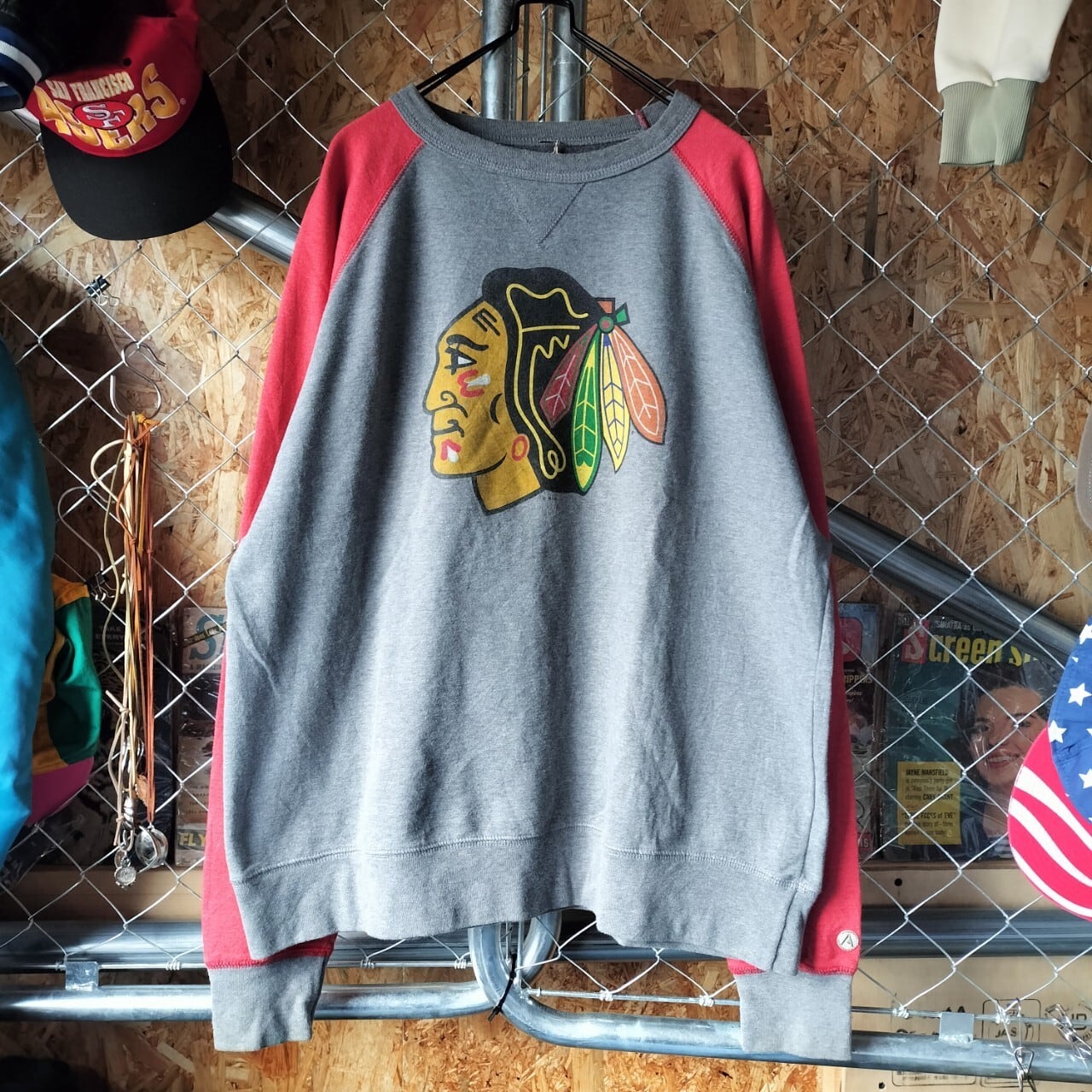 NHL ワシントンレッドスキンズ ラグラン スウェット トレーナー ビッグシルエット ビッグサイズ グレー ユニセックス ストリート アメカジ 古着 【V301】